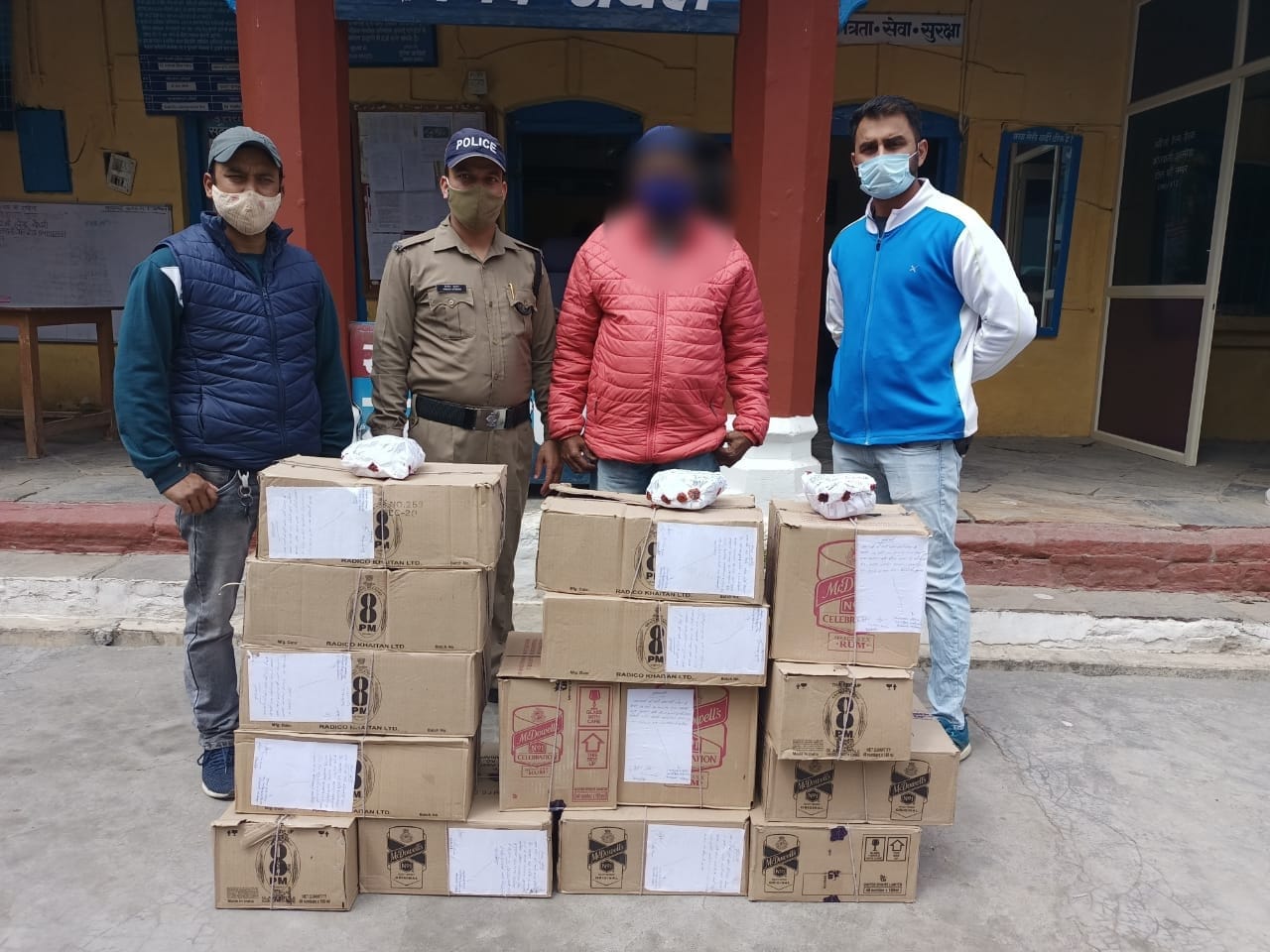 अल्मोड़ा-पंकज भट्ट वरिष्ठ पुलिस अधीक्षक अल्मोड़ा द्वारा आगामी होली पर्व के दृष्टिगत सभी थाना प्रभारियों को त्यौहार को शान्ति एवं सौहार्द पूर्वक सम्पन्न कराये जाने एवं अवैध रूप से शराब की तस्करी,हुडदंग आदि करने वालों के विरूद्व सर्तक दृष्टि रखने एवं बैरियरों पर गहन चैकिंग अभियान चलाते हुए कार्यवाही किये जाने के निर्देश पर दिनाॅक 22.03.2021 को चौकी प्रभारी एनटीडी रजत सिंह कसाना द्वारा पुलिस टीम के साथ एनटीडी तिराहे के पास शैल बैंड पर दौराने चैकिंग बैगनआर यूए-04बी-8794 को चैक किये जाने पर 90,000 रूपये की 15 पेटी अंग्रेजी शराब के साथ एक व्यक्ति को गिरफ्तार कर कोतवाली अल्मोड़ा में मु०अ०सं०- 29/2021 धारा- 60/72 आबकारी अधिनियम में अभियोग पंजीकृत किया गया है। पूछताछ पर बताया कि यह शराब होली पर बेचने हेतु ले जा रहा था।अभियुक्त की पहचान जीशान अनवर उम्र-45 वर्ष पुत्र श्री मोहम्मद एहसान निवासी- एनटीडी अल्मोड़ा के रूप में हुई है।बरामदगी में 15 पेटी अंग्रेजी शराब बरामद हुई है जिसकी कीमत 90,000 रूपये है।गिरफ्तारी टीम में