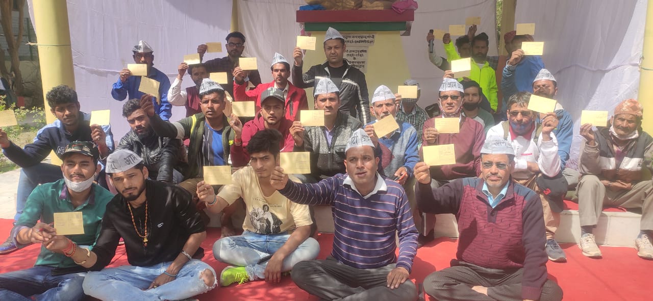 अल्मोड़ा-अल्मोड़ा को कुमाऊँ मंडल से हटाकर गैरसैंण कमिश्नरी में जोड़ने के सरकार के फैसले के खिलाफ आम आदमी पार्टी के प्रदेश उपाध्यक्ष अमित जोशी के नेत्रत्व में अनिश्चितकालीन धरने के तीसरे दिन लोगों का व्यापक समर्थन अमित जोशी को मिल रहा है। आप कार्यकर्ताओं ने हस्ताक्षर के माध्यम से इस अभियान में लोगों को जोड़ना शुरू कर दिया।जिसमें अब तक दो हजार से ज्यादा अल्मोडा की आम जनता इस अभियान से जुड़ कर इस आंदोलन को अपना समर्थन दे चुकी है।बता दें कि आप उपाध्यक्ष आप कार्यकर्ताओं के साथ अनिश्चितकालीन धरने पर 3 दिन पहले बैठ गए थे और तब से वो और उनके साथी पूरे दिन और पूरी रात धरने स्थल पर ही बैठे हैं ।आज अमित जोशी ने बताया कि धरने व हस्ताक्षर अभियान के साथ अब आम आदमी पार्टी अल्मोडा वासियों की वेदना पोस्टकार्ड के माध्यम से मुख्यमंत्री को भिजवायेगी जिस हेतु अभियान आज शुरू किया गया।जिसमे अल्मोडा वासी अपनी पहचान को खोने का दर्द मुख्यमंत्री को भेजेगें।इस अभियान में एक हजार पोस्ट कार्ड भेजे जायेंगे।आज धरने के तीसरे दिन धरने पर जिला उपाध्यक्ष आनंद सिंह बिष्ट,एन एल साह,जगनमोहन फर्त्याल, अखिलेश टम्टा,रोहित सिंह,दानिश कुरेशी,दिनेश कुमार,सोहित भट्ट,एस आर बेग,सुधीर कुमार ,प्रकाश कांडपाल,अजय टम्टा,अभय टम्टा, अंशुल राना,रमेश बोरा,राजेन्द्र राना, शमशेर आर्या,संजय श्यूनारी आदि कार्यकर्ता उपस्थित रहे।