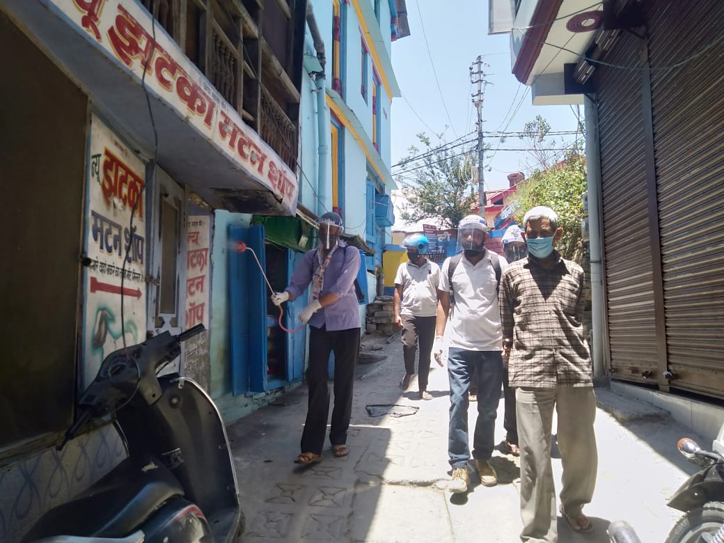 अल्मोड़ा-आज आम आदमी पार्टी अल्मोड़ा द्वारा तीसरे दिन घर घर सैनिटाईजेशन अभियान के तहत पलटन बाजार,थाना बाजार,टम्टा मोहल्ला,नरसिंह बाड़ी,राजपुरा,सरकार की आली,रैलापाली के अंतर्गत घर घर जाकर सैनिटाईजेशन कार्य किया गया।जिसमें 4 टीमों के रूप में आप कार्यकर्ताओं ने 4 अलग अलग क्षेत्रों में सैनिटाइजेशन का कार्य किया व जरूरतमन्दों को राहत सामग्री बांटी।आम आदमी के प्रदेश उपाध्यक्ष अमित जोशी ने बताया कि आम आदमी पार्टी द्वारा सरकार की आली क्षेत्र में जिला उपाध्यक्ष आनंद सिंह बिष्ट,क्षेत्रीय प्रभारी अरूणोदय तिवारी,संदीप नयाल,दिनेश कुमार,ललित कनवाल के नेतृत्व में और पलटन बाजार,थाना बाजार,टम्टा मोहल्ला,नरसिंह बाड़ी क्षेत्र में अखिलेश टम्टा,नंदन लाल शाह,प्रकाश कांडपाल,नीरज सिंह,एस आर बेग के नेतृत्व में और राजपुरा क्षेत्र में नवीन चन्द्र,अफसान खान,रवि कुमार,विकास कुमार,रोहित सिंह के नेतृत्व में व्यापक सेनिटाईजेशन अभियान चलाया गया व जरूरत्मन्दों को राहत सामग्री बांटी गयी।