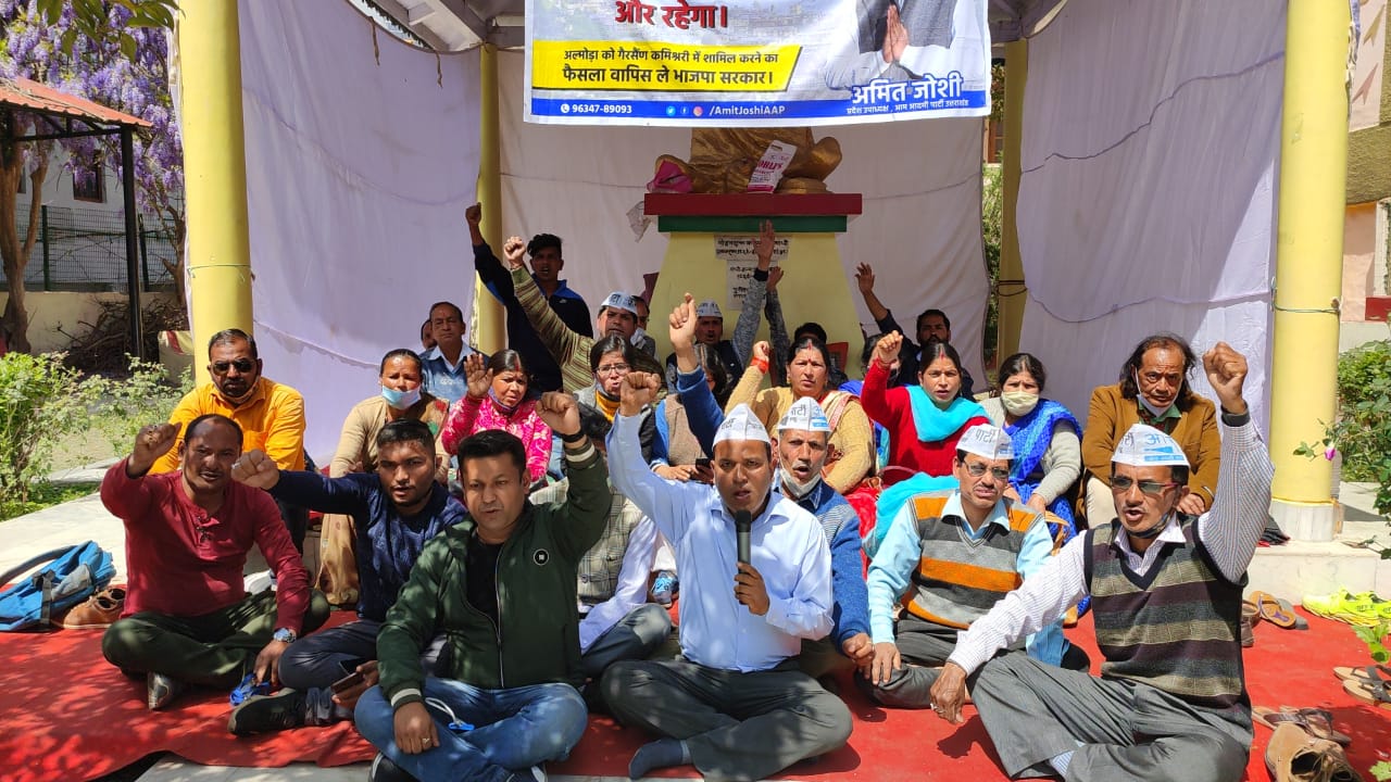 अल्मोड़ा-अल्मोडा को कुमाऊँ मंडल से हटाकर गैरसैंण कमिश्नरी में जोड़ने के सरकार के फैसले के खिलाफ आम आदमी पार्टी के प्रदेश उपाध्यक्ष अमित जोशी के नेत्रत्व में अनिश्चितकालीन धरने के छठे दिन लोगों का समर्थन लगातार अमित जोशी को मिल रहा है।एक ओर जहां अल्मोड़ा के हजारों निवासी पोस्टकार्ड एवं सिग्नेचर के माध्यम से आम आदमी पार्टी के धरने को अपना समर्थन दे चुके हैं वहीं दूसरी ओर अल्मोड़ा के बुद्धिजीवियों, राजनीतिक दलों एवं उत्तराखंड राज्य के आंदोलनकारियों ने भी धरने पर शिरकत कर आम आदमी पार्टी की इस मांग को जायज बताते हुए इसका समर्थन किया।इसी कड़ी में कल रात राज्य आंदोलनकारी एवं उत्तराखंड लोक वाहिनी के दयाकृष्ण कांडपाल द्वारा एवं आज दिन में सीपीआई(एम) के जिला संयोजक दिनेश पांडे जो कि एक राज्य आंदोलनकारी रहे हैं ने अल्मोड़ा को कुमाऊं में ही रखे जाने की मांग का धरने पर उपस्थित होकर समर्थन किया।आज एक ओर जहां सरकार के नुमाइंदों ने छ: दिनों से आंदोलनकारियों की कोई सुध नहीं ली है वही धीरे-धीरे आम आदमी पार्टी का यह धरना अल्मोड़ा का एक बड़ा जन आंदोलन बनता जा रहा है,जिसमें अल्मोड़ा शहर के सभी वर्गों के लोग युवा छात्र एवं तमाम बुद्धिजीवी इस आंदोलन को जायज बताते हुए अपना समर्थन दे रहे हैं।इस दौरान हजारों की संख्या में अल्मोड़ा वासियों ने सिग्नेचर और पोस्टकार्ड के माध्यम से आम आदमी पार्टी के इस अभियान का समर्थन किया है।कार्यकर्ताओं ने और जनता ने जोरदार नारेबाजी कर अल्मोड़ा को कुमाऊं में ही रखे जाने की जाने की मांग की।आपको बता दें कि आप उपाध्यक्ष आप कार्यकर्ताओं के साथ अल्मोड़ा को गैरसैंण कमिश्नरी से हटाने के विरोध में अनिश्चितकालीन धरने पर बैठे हैं।जहां वो दिन रात धरने स्थल पर ही बैठे कर अपनी मांगों को मनवाने की मांग कर रहे हैं।आप उपाध्यक्ष की मांग है कि सरकार गैरसैंण कमिश्नरी से अल्मोड़ा को हटाकर यहां की जनभावनाओं का सम्मान करे।धरने पर बैठे आप उपाध्यक्ष ने कहा ये आंदोलन तब तक जारी रहेगा जब तक कुमाऊं और अल्मोड़ा के जनभावनाओं का सम्मान करते हुए इस फैसले को वापिस न लिया जाय।इस दौरान उनके साथ जिला उपाध्यक्ष आनंद सिंह बिष्ट,एन एल साह,जगमोहन फर्त्याल,अखिलेश टम्टा,रोहित सिंह,रजनी पंत,सुनीता पांडे,पूनम त्रिपाठी,राधा नेगी,मुन्नी प्रसाद,योगेंद्र अधिकारी,नकुल आगरी, भानु पांडे,एडवोकेट मनोज उप्रेती, दानिश कुरेशी,दिनेश कुमार,नीरज सिंह,प्रकाश कांडपाल,संगठन मंत्री मनोज गुप्ता,नवीन चन्द्र आर्य सहित दर्जनों लोग शामिल रहे।