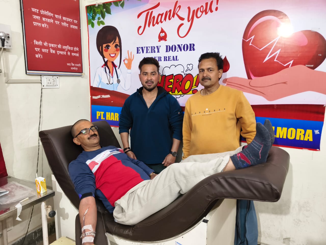 अल्मोड़ा-जिला चिकित्सालय में पहुंचे एक मरीज का हीमोग्लोबिन बेहद कम था।मरीज को आपात स्थिति में रक्त की आवश्यकता थी।ब्लड बैंक एवं रेड क्रास के सदस्यों द्वारा बी पॉजिटिव रक्त के लिए अनेक लोगों से संपर्क किया गया।लेकिन तत्काल में कोई व्यवस्था नहीं हो पाई जिससे मरीज के परिजन परेशान थे।इसकी सूचना जब नगर के सामाजिक कार्यकर्ता सुनील कर्नाटक को मिली तो वह अविलंब जिला चिकित्सालय के रक्तकोष पहुंचे और रक्तदान किया।विदित हो कि रेड क्रॉस एवं ब्लड बैंक अल्मोड़ा के सदस्य लगातार पूरी लगन के साथ रक्त की आवश्यकता पड़ने पर लोगों की मदद कर रहे हैं।इस अवसर पर सुनील कर्नाटक के साथ पहुंचे पार्षद अमित साह मोनू ने लोगों से अपील की है कि रक्तदान में सभी बढ़-चढ़कर अपनी भागीदारी दे ताकि ब्लड बैंक में रक्त की कमी ना हो।इस अवसर पर नमित जोशी भी उपस्थित रहे।
