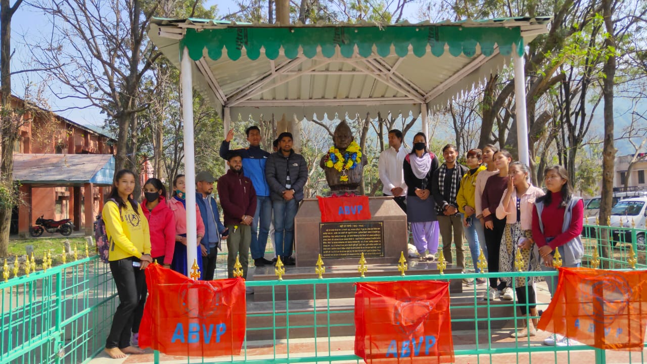 बागेश्वर-आज स्वंतत्रता संग्राम सेनानी कुमाऊं केसरी पंडित बद्री दत्त पांडे की जयंती के अवसर पर अखिल भारतीय विद्यार्थी परिषद बागेश्वर इकाई के कार्यकर्ताओं द्वारा महाविद्यालय में उन्हें श्रद्धा सुमन अर्पित किए गए।यहां अखिल भारतीय विद्यार्थी परिषद के कार्यकर्ताओं द्वारा महाविद्यालय परिसर में स्थित कुमाऊं केसरी पंडित बजे दत्त पांडे की मूर्ति पर माल्यार्पण कर उन्हें याद किया गया।छात्रसंघ अध्यक्ष एवं अखिल भारतीय विद्यार्थी परिषद के जिला संयोजक सौरभ जोशी ने बताया कि बद्री दत्त पांडे एक महान स्वतंत्र संग्राम सेनानी थे जिन्होंने स्वतंत्रता संग्राम में अग्रणी भूमिका निभाई थी।इस अवसर पर अखिल भारतीय विद्यार्थी परिषद के कार्यकर्ताओं ने उन्हें नमन करते हुए उनके जीवन से प्रेरणा लेकर आगे बढ़ने का संकल्प लिया।यहां आयोजित कार्यक्रम में जिला संगठन मंत्री शिवम पांडे,कॉलेज अध्यक्ष राहुल जोशी,राहुल टाकुली,खजान टँगड़िया,कृष्णा फ़र्शवान,आकाश कुमार,आशीष कुमार,लता,ललिता, कविता,प्राची रावत,ललिता थापा, योगेश जोशी,उज्जवल साह,शैली खेतवाल आदि कार्यकर्ता मौजूद रहे।