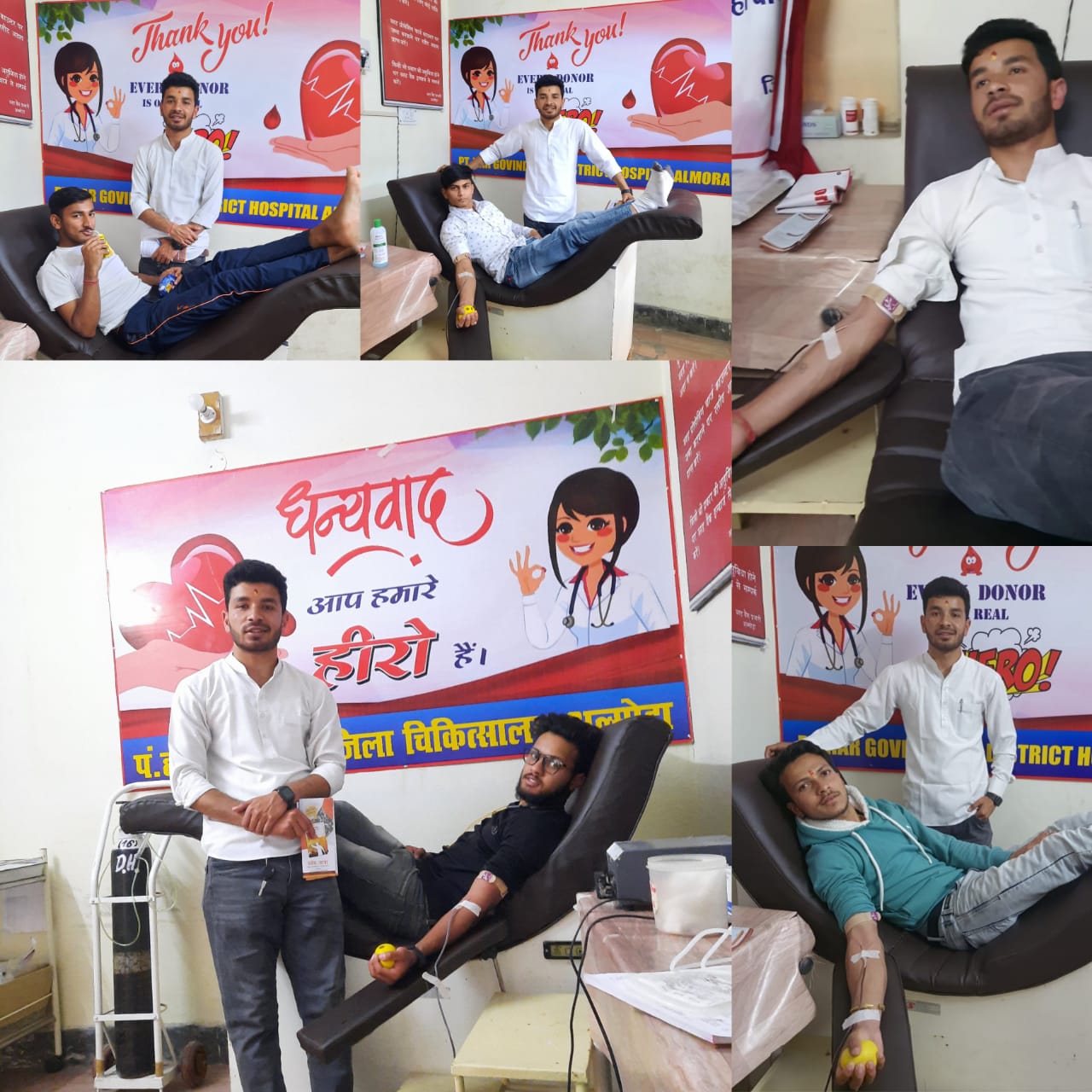 अल्मोड़ा-आज दिनांक 22 मार्च 2022 को अखिल भारतीय विद्यार्थी परिषद अल्मोड़ा ईकाई के कार्यकर्ताओं ने जिला अस्पताल अल्मोड़ा में रक्त को कमी को देखते हुए पांच यूनिट रक्तदान किया।साथ ही जिला संयोजक कृष्णा नेगी ने कहा कि आवश्यकता अनुसार हम और भी रक्त की आवश्यकता को पूर्ण करने हेतु संघर्षरत हैं।विद्यार्थी परिषद समाज में हमेशा से ही आवश्क्तानुसार सामाजिक कार्य करते आयी है तथा सामाजिक जिम्मेदारी के नाते जो भी जरूरत महसूस होती हैं विद्यार्थी परिषद के कार्यकर्ताओं ने निश्वार्थ भाव से हमेशा सामाजिक दायित्वों को निभाया है।रक्तदान करने वालों में जिला संयोजक कृष्णा नेगी ने AB+, प्रदेश कार्यकारिणी सदस्य वरुण कपकोटी ने B+,पूर्व नगर मंत्री वर्तमान प्रदेश कार्यकारिणी सदस्य अनुनय पाण्डेय ने A+,कार्यकर्ता रोहित वर्मा ने A+ और कार्यकर्ता अंकित बिष्ट ने AB+ रक्तदान किया।तथा कहा कि साथ ही जरूरत पड़ने पर रक्तदान हेतु अभाविप के सभी कार्यकर्ता हमेशा जागरूक हैं तथा सभी विद्यार्थियों व अन्य सम्बंधियों को जागरूक करने हेतु लगातार कार्य कर रहें हैं।