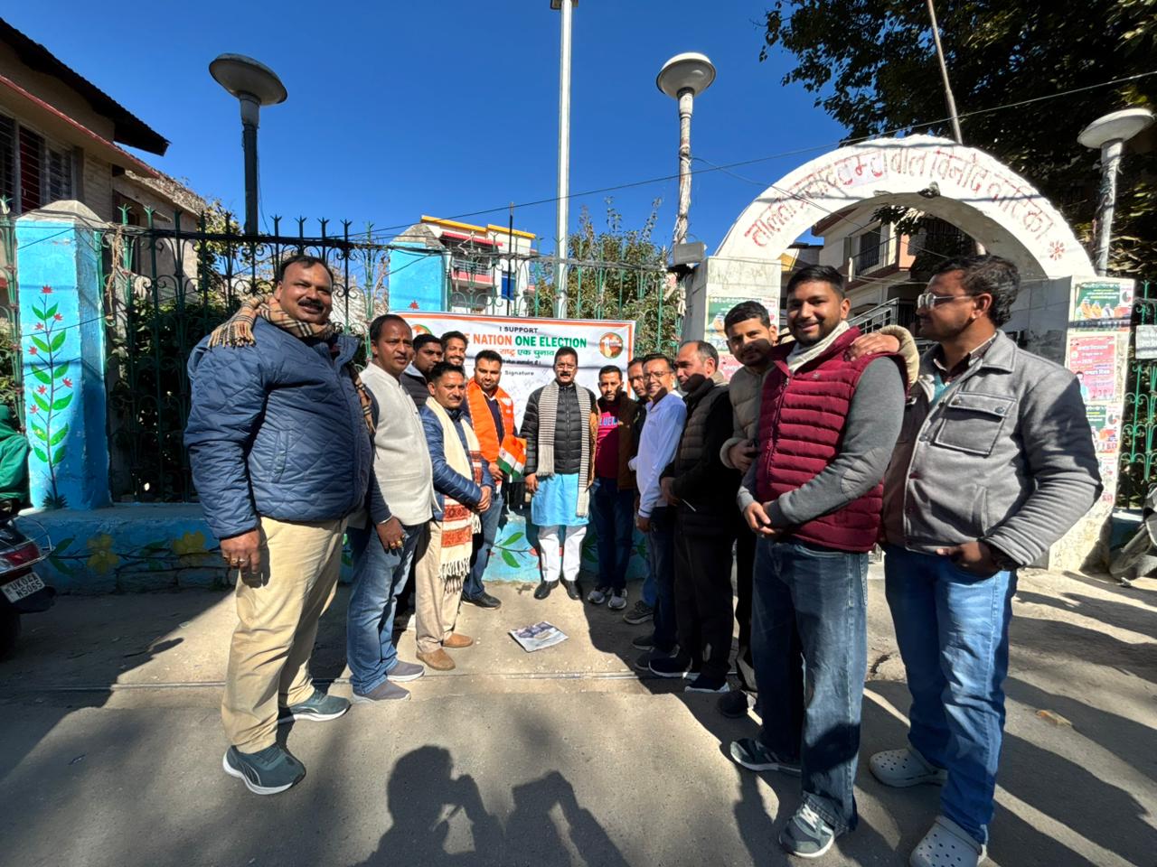 अल्मोड़ा-आज भारतीय जनता पार्टी के एक राष्ट्र एक चुनाव अभियान के अंतर्गत भारतीय जनता युवा मोर्चा द्वारा हस्ताक्षर अभियान एवं मानव श्रृंखला कार्यक्रम का आयोजन किया गया।कार्यक्रम का उद्देश्य आम जनता को यह संदेश देना था कि बार बार होने वाले चुनाव देश के विकास में बाधा बनते हैं,जबकि एक देश एक चुनाव से संसाधनों की बचत होगी,प्रशासनिक स्थिरता आएगी और लोकतंत्र और अधिक सशक्त बनेगा।इस कार्यक्रम के जिला संयोजक नमन गुरुरानी रहे।कार्यक्रम में पूर्व विधायक कैलाश शर्मा, जिलाध्यक्ष महेश नयाल,जिला महामंत्री दर्शन रावत एवं प्रकाश भट्ट,नगर निगम महापौर अजय वर्मा,नगर अध्यक्ष विनीत बिष्ट, युवा मोर्चा जिलाध्यक्ष पंकज भाकुनी,जिला पंचायत सदस्य प्रेम लटवाल,जगत भट्ट,कैलाश गुरुरानी,रवि रौतेला,मोहित बिष्ट,अभिषेक जोशी,आनंद डंगवाल,दिव्या जोशी,प्रमोद पवार,रोहित शर्मा,त्रिलोक रौतेला,अभिषेक तिवारी,शंकर बिष्ट,दरवान सिंह नेगी,गौरव भंडारी सहित बड़ी संख्या में भाजपा एवं युवा मोर्चा के कार्यकर्ता मौजूद रहे।