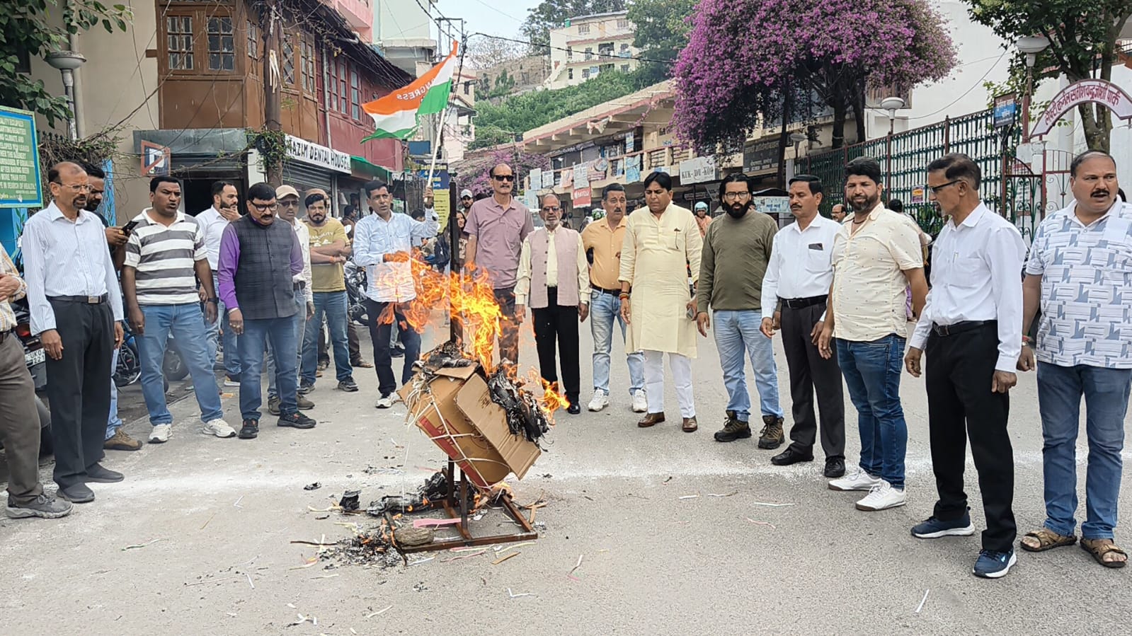 अल्मोड़ा-आज अल्मोड़ा में कांग्रेस पार्टी ने भाजपा का पुतला दहन किया।इस अवसर पर अल्मोड़ा कांग्रेस जिलाध्यक्ष भूपेन्द्र सिंह भोज ने कहा कि हरिद्वार में भाजपा नेत्री द्वारा अपनी बेटी का शारीरिक शोषण करवाया गया और अपनी बेटी का गैंग रेप करवाया गया।उसके विरोध में आज अल्मोड़ा कांग्रेस द्वारा भाजपा का पुतला दहन किया गया है। उन्होंने कहा कि भाजपा जिस तरह से बेटी पढ़ाओ बेटी बचाओ का नारा देती है आज उसी के राज में भाजपा की नेत्री द्वारा ही अपनी पुत्री का गैंग रेप करवाया गया जिससे भाजपा का चाल,चरित्र और चेहरा उजागर हो गया है कि आज भाजपा का चरित्र क्या हो गया है। उन्होंने कहा कि उत्तराखंड में जितनी भी बलात्कार की घटना सामने आयी है उनमे भाजपा के नेताओं की संलिप्तता ही सामने आ रही है। पुतला दहन कार्यक्रम में कांग्रेस जिलाध्यक्ष भूपेंद्र सिंह भोज, नगर अध्यक्ष तारा चंद्र जोशी,जिला उपाध्यक्ष विनोद वैष्णव,आनंद सिंह बिष्ट,नारायण दत्त पाण्डेय,पूरन रौतेला,हेम चंद्र तिवारी,महेश आर्या, परितोष जोशी,कार्तिक साह,बी के पाण्डेय,गोविन्द मेहरा,भैरव गोस्वामी, अमन अंसारी,दीपक कुमार,अनूप भारती,ललित सतवाल,गोपाल तिवारी बलवंत राणा,अशोक गोस्वामी,यश बूढ़ोली,रमेश नेगी सहित दर्जनों कांग्रेस कार्यकर्ता उपस्थित रहे।