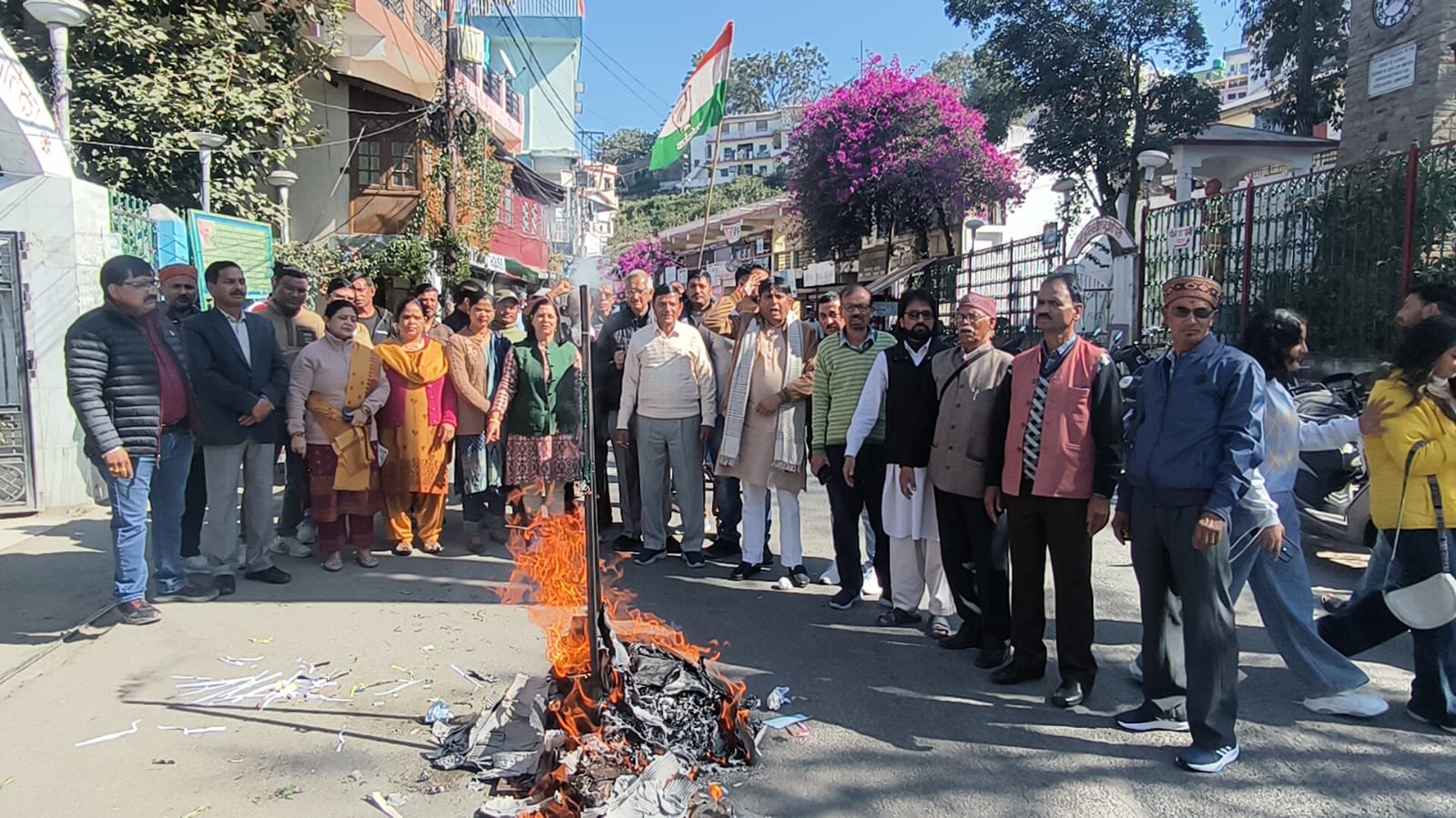 अल्मोड़ा-आज जिला कांग्रेस कमेटी अल्मोड़ा के तत्वाधान मे कर्मचारियों पर एस्मा लगाने के विरोध मे धामी सरकार का पुतला दहन किया गया।कांग्रेस जिलाध्यक्ष भूपेंद्र सिंह भोज ने कहा कि आज भाजपा सरकार तानाशाही पर उतर आयी है। आज पूरा प्रदेश आंदोलनरत है। कर्मचारी अपनी जायज़ मांगो को लेकर आंदोलन कर रहे है और मुख्यमंत्री अघोषित इमरजेंसी लगा कर कर्मचारियों का उत्पीड़न कर रहे है जो दुर्भाग्यपूर्ण है।पुतला दहन कार्यक्रम मे कांग्रेस जिलाध्यक्ष भूपेंद्र सिंह भोज,नगर अध्यक्ष तारा चंद्र जोशी,महिला जिलाध्यक्ष राधा बिष्ट,पूर्व जिलाध्यक्ष पीताम्बर पांडे, पूर्व दर्जामंत्री पूरन रौतेला,नारायण दत्त पाण्डेय,तारा चंद्र साह,जया जोशी, जिला महामंत्री गीता मेहरा,किरन आर्या,आनंद बिष्ट, अम्बी राम आर्या,गोविन्द लाल, निज़ाम कुरैशी,हर्ष कनवाल, चन्दन भोज,भैरव गोस्वामी, आसुतोष कनवाल,बी के पाण्डेय,गोविन्द मेहरा,दिनेश पिल्कवाल,हेम तिवारी,वकुल साह,नवाज़ खान,रविन्द्र टम्टा, दीपेश कांडपाल,शुभम जोशी, आँशु गोस्वामी,विश्वास टम्टा, मनोज बिष्ट,परितोष जोशी सेवादल,गोपाल भट्ट उपस्थित रहे।