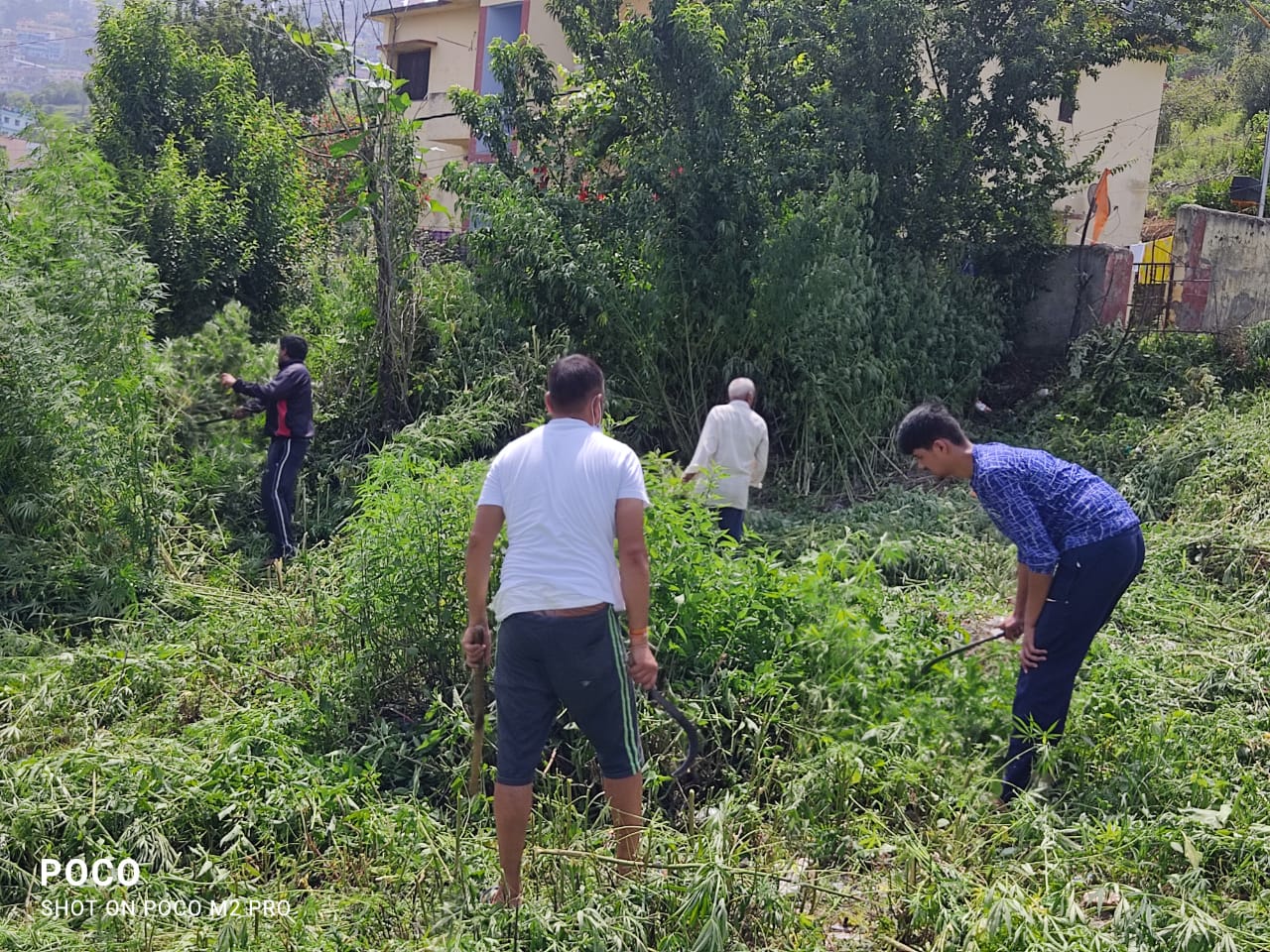 अल्मोड़ा-सरकार की आली खोल्टा अल्मोड़ा में पी०डब्ल्यू०डी०मैदान व उसके आस पास बरसात के कारण बिच्छू घास के साथ -साथ कंटीली झाड़ियों के कारण आये दिन जंगली जानवरों व सांप कीटों का भय लगा रहता है।कई बार तो सांप घरों में घुस जाते हैं इसके अलावा बारिश होने पर नालियों के बन्द होने से पानी कमरों में घुसने लगा है इस समस्या को देखते हुए दीया ग्रुप के सक्रिय सदस्य व शोध के छात्र विनोद जोशी के नेतृत्व में साफ-सफाई अभियान चलाया गया।जिसमें सभी सदस्यों के द्वारा कूड़ा एकत्रित करके उसे नष्ट किया गया,विच्छू घास व कंटीली झाड़ियों को साफ किया गया।इसके अलावा जो नालियां बन्द हो गयी थी उन नालियों को दुरूस्त करने का प्रयास किया गया।सभी सदस्यों ने आस -पास लोगों को जागरूक करते हुए अपने चारों ओर साफ व स्वच्छ रखने का आह्वाहन किया गया।दीया ग्रुप के सदस्य विनोद जोशी का कहना है कि बरसात शुरू हो चुकी है अगर हमारे आस पास गंदगी इक्क्ठा रहती है तो उससे अनेक बीमारियां पैदा होती हैं और अस्पताल अभी भी कोरोना पीड़ितों का इलाज करने में लगे इसलिए हम सबको खुद की सुरक्षा का ध्यान रखा होगा तथा आस पास स्वच्छ व साफ रखना होगा।इस अवसर पर विनोद जोशी,ख्याली जोशी,संजय पांडे,रेनू पांडेय,गौरभ कांडपाल आदि मौजूद रहे।