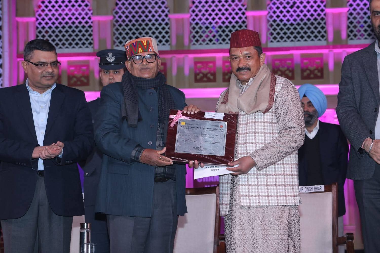 अल्मोड़ा-सांस्कृतिक नगरी अल्मोड़ा के वरिष्ठ रंगकर्मी प्रकाश बिष्ट को उत्तर क्षेत्र सांस्कृतिक पटियाला की ओर से सम्मानित किया गया।राज्यपाल गुलाब चंद कटारिया ने उन्हें लोक कला साधक सम्मान के साथ ढाई लाख रुपये के पुरस्कार से सम्मानित किया।रंगकर्मी प्रकाश बिष्ट बीते 40 साल से उत्तराखंड की लोकसंस्कृति को राष्ट्रीय व अंतर्राष्ट्रीय स्तर पर प्रदर्शित करते आ रहे है।इससे पहले भी उनको कई लोक कला सम्मान से नवाजा गया है।वह उत्तराखंड के ऐसे पहले लोक कलाकार है जिनको लोक कला साधक सम्मान 2025 से सम्मानित किया गया है।उन्होंने यह पुरस्कार अपनी माता को समर्पित किया।जिनका इसी वर्ष सितंबर माह में निधन हो गया था।बिष्ट को सम्मान मिलने पर विधायक मनोज तिवारी,पूर्व विधायक रघुनाथ सिंह चौहान, भाजपा प्रदेश कार्यकारिणी सदस्य रवि रौतेला,विनीत बिष्ट, रवि चौहान,नीरज चौहान समेत कई लोगों ने खुशी जताई।