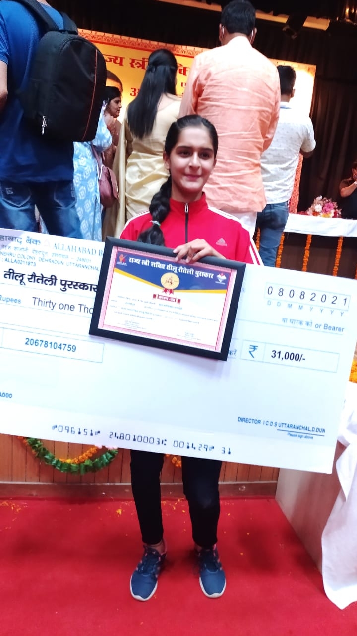 अल्मोड़ा-ताइक्वांडो खिलाड़ी कनिष्का भंडारी को ताइक्वांडो खेल में सराहनीय उपलब्धियों के लिए राज्य स्त्री शक्ति तीलू रौतेली पुरस्कार २०२०-२१ से सम्मानित किया गया है।विगत दिवस देहरादून में हुए कार्यक्रम में मुख्यमंत्री के द्वारा उन्हें यह सम्मान दिया गया।वे बी०ए०द्वितीय वर्ष की छात्रा हैं।उनके पिता इन्द्रमोहन भण्डारी व्यवसायी एवं माता श्रीमती रंजना भण्डारी अध्यापिका हैं।आज सायं ४:३० बजे ताइक्वांडो एकेडमी अल्मोड़ा,कल्पना कृति जन जागरण समिति अल्मोड़ा और मानस पब्लिक स्कूल अल्मोड़ा द्वारा कृतिका भण्डारी का सम्मान समारोह भी मानस पब्लिक स्कूल अल्मोड़ा में आयोजित किया जा रहा है।कृतिका भण्डारी को पुरस्कार मिलने पर स्पोर्ट्स ताइक्वांडो एकेडमी अल्मोड़ा की अध्यक्ष वन्दना भण्डारी, महासचिव कमल कुमार बिष्ट, कल्पना कृति जन महिला जागृति समिति अल्मोड़ा की संरक्षक निराजना पाण्डे तथा मानस पब्लिक स्कूल की प्रधानाचार्या मंजू बिष्ट ने हर्ष व्यक्त किया है।
