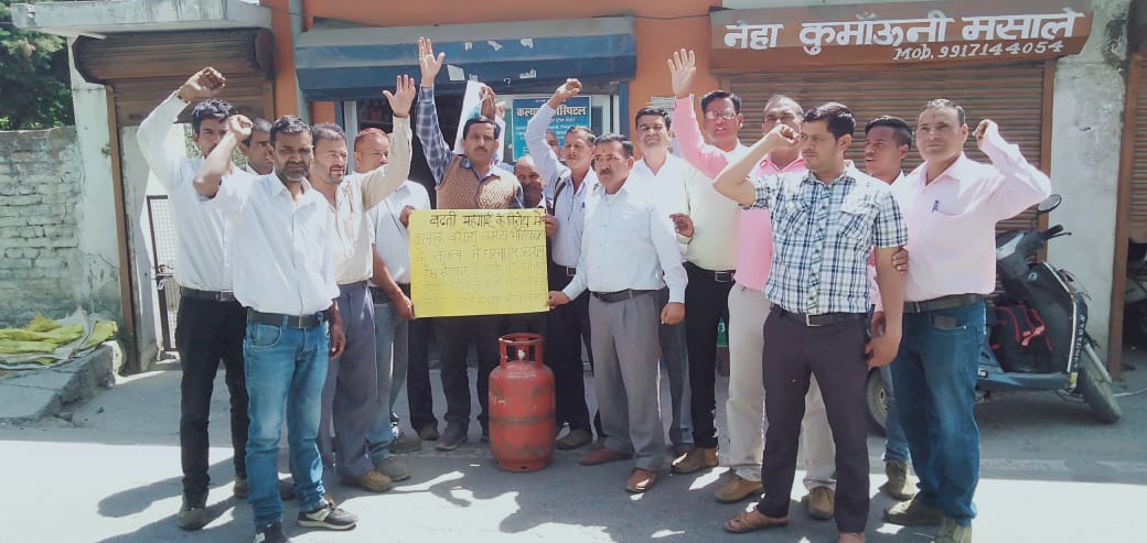 अल्मोड़ा-अल्मोड़ा के भैसियाछाना एवं हवालबाग ब्लाक में कांंग्रेसजनों ने महंगाई के खिलाफ भाजपा सरकार के विरोध में जोरदार प्रदर्शन किया।भैसियाछाना में ब्लाक अध्यक्ष पूरन सिंह सुप्याल एवं हवालबाग में ब्लाक अध्यक्ष राजेन्द्र बोरा के नेतृत्व में प्रदर्शन किया गया।भैसियाछाना में प्रदर्शन करने वालों में ब्लाक अध्यक्ष पूरन सिंह सुप्याल,प्रताप राम आर्य,नरेश बाराकोटी,दीपक पाण्डे,दीपक सनवाल,दीपक भट्ट,भगवान आर्य,श्याम सिंह पूना,गिरीश टम्टा,मोहन सिंह सुप्याल,महेश राम,खड़ग राम,खिलानन्द भट्ट, भगवती मटेला,राजेन्द्र बिष्ट,शेखर चन्द्र पाण्डे,गोपाल सिंह मेहरा,देवराम,प्रकाश भट्ट,भगवान राम,चन्दन राम,गोविन्द राम,जगदीश चन्द्र पाण्डे शामिल रहे।हवालबाग ब्लाक में प्रदर्शन करने वालों में ब्लाक अध्यक्ष राजेन्द्र बोरा,चन्दन रौतेला, विरेन्द्र रौतेला,नरेन्द्र कुमार,बिशन राम,राजेन्द्र रावत,नरेन्द्र कुमार,विजय कुमार,बसन्त राम आदि शामिल रहे।