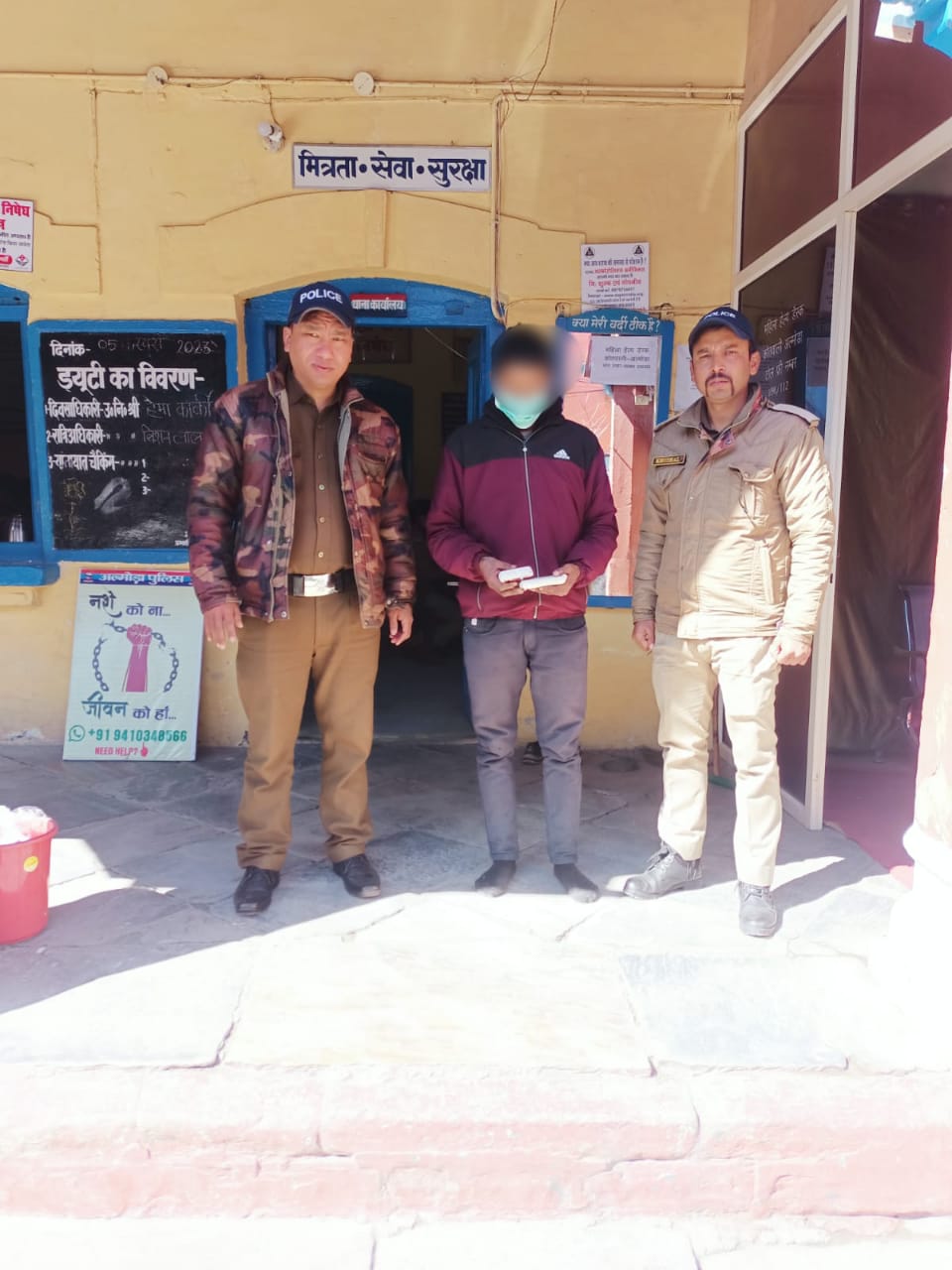 अल्मोड़ा-प्रदीप कुमार राय एसएसपी अल्मोड़ा द्वारा ड्रग्स फ्री देवभूमि मिशन 2025 के क्रम में जनपद के समस्त सीओ/ थाना प्रभारियों एवं एसओजी/एएनटीएफ टीम को नशा मुक्ति अभियान के तहत युवाओं एवं स्कूल/काँलेज के छात्रों को नशे का शिकार होने से बचाने के लिए जनपद में मादक पदार्थों की तस्करी/बिक्री करने वाले नशे के सौदागरों पर सतर्क दृष्टि रखकर कड़ी कार्यवाही किये जाने हेतु निर्देश दिये गये है।दिनांक 04.02.2023 को सीओ अल्मोड़ा विमल प्रसाद व सीओ आँपरेशन ओशीन जोशी के नेतृत्व/मार्गदर्शन में जनपद एसओजी/एएनटीएफ अल्मोड़ा की सूचना पर कोतवाली अल्मोड़ा पुलिस एवं एसओजी/एएनटीएफ की संयुक्त टीम द्वारा पाण्डेखोला बैण्ड एकान्त रेस्टोरेन्ट के पास चेकिंग के दौरान अभियुक्त राजेन्द्र सिंह बोरा के कब्जे से 6.20 ग्राम स्मैक व एक इलेक्ट्रानिक तराजू बरामद करते हुए अभियुक्त को गिरफ्तार कर कोतवाली अल्मोड़ा में एन0डी0पी0एस0 एक्ट में अभियोग पंजीकृत कर आवश्यक कार्यवाही की गई है।गिरफ्तार अभियुक्त की पहचान राजेन्द्र सिंह बोरा, उम्र- 24 वर्ष पुत्र स्व0 पान सिंह, निवासी गणेश मन्दिर के पास जलाल तिराहा, थाना व जनपद अल्मोड़ा के रूप में हुई है।बरामदगी में 6.20 ग्राम स्मैक बरामद हुई है।जिसकी कीमत 62,000/-(बासठ हजार रुपये ) है।पुलिस टीम में उ0नि0 दीपक सिंह बिष्ट कोतवाली अल्मोड़ा,हे0कानि0 मोहन चन्द्र, कोतवाली अल्मोड़ा, कानि0 खुशाल राम, कोतवाली अल्मोड़ा,कानि0 विरेन्द्र सिंह बिष्ट, एसओजी/एएनटीएफ अल्मोड़ा,कानि0 मौ0 यामीन, एसओजी/एएनटीएफ अल्मोड़ा शामिल रहे।