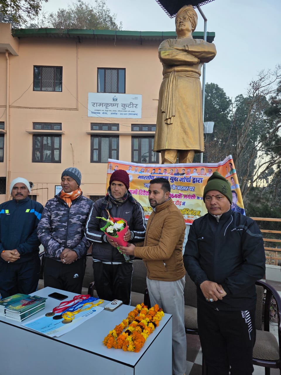 अल्मोड़ा-भारतीय जनता पार्टी युवा मोर्चा अल्मोड़ा द्वारा राष्ट्रीय युवा दिवस के अवसर पर स्वामी विवेकानंद की 164 वीं जयंती के उपलक्ष्य में स्वदेशी संकल्प दौड़ का भव्य आयोजन किया गया।कार्यक्रम की अध्यक्षता भाजयुमो जिलाध्यक्ष पंकज भकुनी ने की। इस आयोजन का उद्देश्य युवाओं में स्वदेशी भावना,आत्मनिर्भरता और राष्ट्रप्रेम को सशक्त करना रहा।अपने संबोधन में भाजयुमो जिलाध्यक्ष पंकज भकुनी ने कहा कि स्वामी विवेकानंद केवल एक व्यक्तित्व नहीं बल्कि युवा चेतना के प्रतीक हैं।यह स्वदेशी संकल्प दौड़ युवाओं में आत्मनिर्भर भारत और राष्ट्रनिर्माण के संकल्प को मजबूत करने का माध्यम है।जब युवा संकल्पित होता है तो देश का भविष्य स्वतः उज्ज्वल हो जाता है।भाजयुमो का प्रत्येक कार्यकर्ता स्वामी विवेकानंद के विचारों को आत्मसात कर भारत को विश्वगुरु बनाने के लिए प्रतिबद्ध है।कार्यक्रम में मुख्य अतिथि के रूप में अल्मोड़ा नगर निगम के मेयर अजय वर्मा उपस्थित रहे।उन्होंने युवाओं को संबोधित करते हुए कहा आज का युवा ही कल का भारत है। स्वामी विवेकानंद ने युवाओं को शक्ति,साहस और आत्मविश्वास का मार्ग दिखाया।यह स्वदेशी संकल्प दौड़ केवल एक आयोजन नहीं,बल्कि राष्ट्र के प्रति युवाओं की जागरूकता और प्रतिबद्धता का प्रतीक है। मुझे विश्वास है कि अल्मोड़ा का युवा राष्ट्रहित में अग्रणी भूमिका निभाएगा और भारत को नई ऊँचाइयों तक ले जाएगा।कार्यक्रम में विशिष्ट अतिथि के रूप में रामकृष्ण कुटीर अल्मोड़ा से माधव जी महाराज उपस्थित रहे।इसके अतिरिक्त प्रदेश कार्यकारिणी सदस्य रवि रौतेला, भाजपा महानगर अध्यक्ष विनीत बिष्ट,प्रदेश मंत्री किसान मोर्चा हरीश कनवाल,पूर्व जिलाध्यक्ष रमेश बहुगुण,ग्रामीण मंडल अध्यक्ष नवीन बिष्ट,जिला मंत्री मनोज जोशी तथा सौरभ वर्मा सहित अनेक गणमान्य लोग मौजूद रहे।दौड़ में सैकड़ों युवाओं ने उत्साहपूर्वक भाग लिया।कार्यक्रम का समापन राष्ट्रभक्ति के नारों और स्वामी विवेकानंद के विचारों पर चर्चा के साथ हुआ।इस अवसर पर वक्ताओं ने युवाओं से स्वदेशी संकल्प को जीवन में अपनाकर राष्ट्र निर्माण में सक्रिय भूमिका निभाने का आह्वान किया।कार्यक्रम ने युवाओं में ऊर्जा,अनुशासन और देशभक्ति की भावना को और अधिक सुदृढ़ किया।