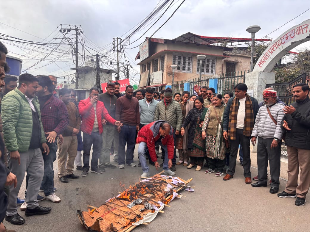 अल्मोड़ा-पहाड़ के लोगों पर दिए गए बयान को लेकर कांग्रेस पार्टी जिलाध्यक्ष भूपेंद्र सिंह भोज के नेतृत्व में कांग्रेसजनों ने आज जीआईसी से चौघानपाटा तक वित्त मंत्री प्रेम चंद्र अग्रवाल की सांकेतिक शवयात्रा निकाल कर चौघानपाटा पर आकर शवदाह किया।कांग्रेस जिलाध्यक्ष भूपेंद्र सिंह भोज ने कहा कि उत्तराखंड के पहाड़ियों को साले पहाड़ी कहकर उत्तराखंड के वित्त मंत्री ने अपना मानसिक संतुलन खो जाने के संकेत दिए हैं।उत्तराखंड राज्य निर्माण में पहाड़ के लोगों का योगदान कोई नहीं भूल सकता,पहाड़ के लोगों को गाली देना राज्य के तमाम आंदोलनकारियों का अपमान है।पहाड़ के लोग इस अपमान का बदला जरूर लेंगे।जिलाध्यक्ष भूपेंद्र सिंह भोज ने खुली चुनौती देते हुए कहा कि भाजपा के मंत्री में अगर हिम्मत है तो वे पहाड़ का दौरा कर के दिखाए। कांग्रेस पार्टी उन्हें अल्मोड़ा जिले की सीमाओं में घुसने नहीं देगी।ऐसे पहाड़विरोधी नेताओं के लिए उत्तराखंड में कोई जगह नहीं होनी चाहिए।मुख्यमंत्री को अपने इस पहाड़ विरोधी मंत्री का तुरंत इस्तीफा लेना चाहिए।शवदाह कार्यक्रम में कांग्रेस जिलाध्यक्ष भूपेंद्र सिंह भोज, नगर अध्यक्ष कांग्रेस तारा चंद्र जोशी, महिला जिलाध्यक्ष राधा बिष्ट,प्रदेश सेवादल महिला अध्यक्ष शोभा जोशी, पूर्व नगर अध्यक्ष पूरन रौतेला,युवा कांग्रेस जिलाध्यक्ष दीपक कुमार, एनएसयूआई जिलाध्यक्ष संजू सिंह, युवा कांग्रेस नगर अध्यक्ष जगदीश तिवारी,सोमेश्वर ब्लॉक अध्यक्ष कुंदन भंडारी,सैनिक प्रकोष्ठ जिलाध्यक्ष राजू भट्ट,पूर्व छात्रसंघ अध्यक्ष पंकज कार्की,दीप सिंह डांगी,विनोद वैष्णव, लीला जोशी,निजाम कुरैशी,सुशील साह,कार्तिक साह,किरण आर्य,मंजू काण्डपाल,फेमिना खान,इरशाद एहमद,महेश आर्य,बाल विक्रम सिंह रावत,गौरव सतवाल,प्रदीप बिष्ट,अमर बिष्ट,एन डी पांडेय,गौरव वर्मा,वैभव पाण्डेय,मोहन सिंह देवली,हरेंद्र सिंह रावत,धीरेन्द्र सिंह गैलाकोटी,जगदीश पांडे,संजीव कर्मियाल,उमेश गुरुरानी,विश्वास टम्टा,शिवम पंत, कमल मेहता,नितिन रावत,देवेन्द्र कनवाल,रोहित रौतेला,आशुतोष गोस्वामी,सोनी गोस्वामी,देव सिंह कनवाल,मनोज बिष्ट आदि मौजूद रहे।