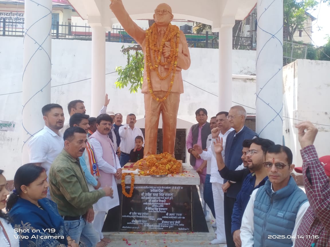 अल्मोड़ा-आज कांग्रेस कार्यकर्ताओं के द्वारा संविधान निर्माता भारत रत्न डॉ भीम राव अम्बेडकर की जंयती को धूमधाम से मनाया गया।इस अवसर पर स्थानीय चौघानपाटा में डॉ भीम राव अम्बेडकर की मूर्ति पर माल्यार्पण किया गया। इस अवसर पर डॉ भीम राव अम्बेडकर अमर रहे के नारे लगाए गए।उसके बाद कांग्रेस कार्यकर्ताओं द्वारा कांग्रेस कार्यालय में उनके 134 वे जन्मदिवस को मनाते हुए विचार गोष्ठी की गई।कार्यक्रम की अध्यक्षता भूपेन्द्र सिंह भोज जिलाध्यक्ष जिला कांग्रेस कमेटी एवं संचालन तारा चन्द्र जोशी नगर अध्यक्ष नगर कांग्रेस कमेटी ने किया।इस अवसर पर उपस्थित जिलाध्यक्ष जिला कांग्रेस कमेटी भूपेन्द्र सिंह भोज ने डॉ भीम राव अम्बेडकर की जीवनी पर प्रकाश डालते हुए कहा कि उन्होंने बचपन से ही संघर्ष का जीवन यापन किया। देश के प्रति त्याग के कारण ही देश के संविधान निर्माता बने जिसके बदौलत आज हमे न्याय का अधिकार मिला है।कार्यक्रम में उपस्थित अल्मोड़ा बारामंडल विधायक मनोज तिवारी ने कहा कि डॉ भीम राव अम्बेडकर ने समाज को समानता का अधिकार दिलाने के लिए सबसे बड़ा हथियार शिक्षा को बनाया।शिक्षा के कारण ही उच्च मुकाम तक पहुंचे और संविधान निर्माता बने।कार्यक्रम में उपस्थित पूर्व नगरपालिका अध्यक्ष प्रकाश चंद्र जोशी ने कहा कि उन्होंने उस समय की तमाम यातनाएं झेलने के बाद भी कभी हार नहीं मानी इसलिए वो देश के संविधान निर्माता बने।कार्यक्रम में उपस्थित प्रदेश सचिव एड महेश चन्द्र ने डॉ भीम राव अम्बेडकर के देश के प्रति अहम भूमिका को याद करते हुए कहा कि आज हमे देश में उन्हीं के सेवा से न्याय एवं समानता का अधिकार मिला है।डॉ भीम राव अम्बेडकर हमेशा हर वर्ग की लडाई लड़ते थे उनके देश के प्रति योगदान को भूल नहीं सकते हैं।कार्यक्रम में उपस्थित पूर्व अध्यक्ष अल्मोड़ा अर्बन को बैंक आनन्द सिंह बगडवाल ने कहा कि देश के संविधान निर्माता डॉ भीम राव अम्बेडकर को 32 डिग्रियां और 9 भाषाओं का ज्ञान महारथ हासिल था। इसके अलावा स्वतंत्रता सेनानी आश्रित तारा चन्द्र साह,मनोज कुमार जोशी,सुनील कुमार बाल्मीकि आदि ने विचार रखे।इस अवसर पर पूर्व दुग्ध संघ प्रदेश उपाध्यक्ष दीप सिंह डांगी,व्यापार मंडल जिलाध्यक्ष सुशील साह,मेयर प्रत्याशी भैरव गोस्वामी,पूर्व दर्जा प्राप्त राज्यमंत्री पूरन रौतेला,वरिषठ कांग्रेसी अमरजीत सिंह भाकुनी,कांग्रेस प्रवक्ता निर्मल रावत,कांग्रेस जिला महामंत्री दिनेश पिलख्वाल,कांग्रेस महामंत्री परितोष जोशी,निर्मला काण्डपाल, फेमिना खान,नारायण दत्त पाण्डे, गोविन्द मेहरा,पार्षद वैभव पाण्डे, युका नगर अध्यक्ष जगदीश तिवारी, पूर्व श्रेत्र पंचायत सदस्य मनोज विष्ट, पूर्व प्रधान जगदीश पाण्डे,छात्र नेता अमित व