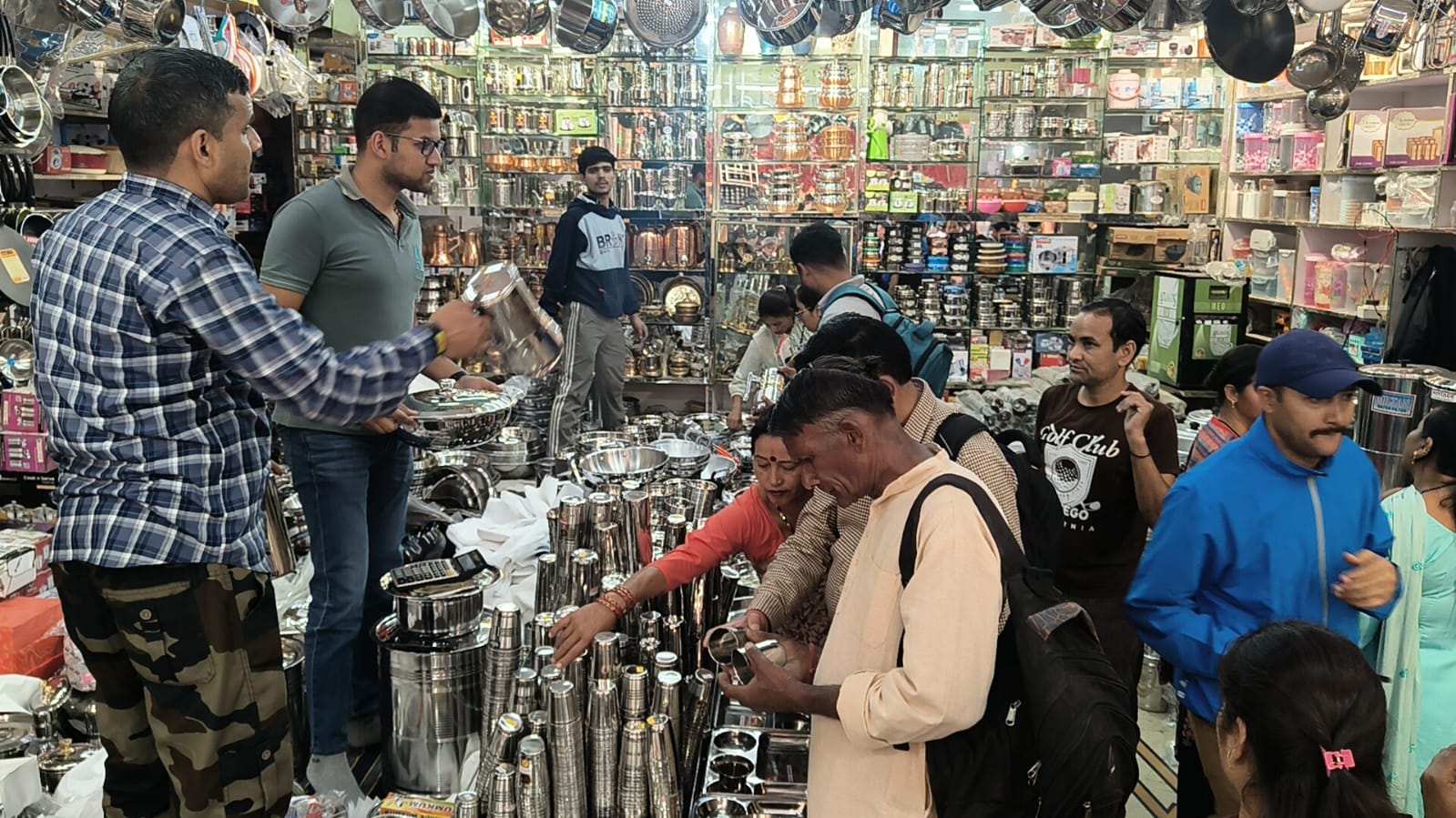 “बर्तनों की दुकानों में जुटी रही भीड़”