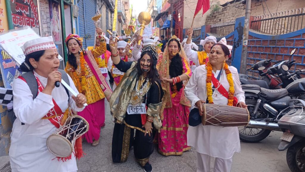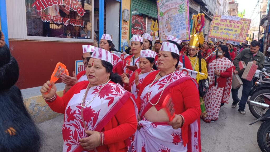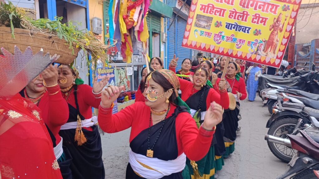 अल्मोड़ा-महिला कल्याण संस्था की ओर से आयोजित दो दिवसीय होलिकोत्सव का समापन हो गया है।गुरवार को पलटन बाजार स्थित सिद्ध बाबा नौला से नंदादेवी मंदिर तक भव्य सांस्कृतिक जुलूस का आयोजन किया गया। इस दौरान महिलाएं होली गीत गाते हुए नृत्य करते हुए चल रही थी। जुलूस देखने बड़ी संख्या में लोगों की भीड़ लगी रही।सांस्कृतिक जुलूस का शुभारंभ के साथ ही जुलूस नगर के गंगोला मोहल्ला, जौहरी बाजार, रघुनाथ मंदिर, कहचरी बाजार से मल्ला महल पहुंचा, जहां महिला होल्यारों ने सांस्कृतिक कार्यक्रमों के साथ शानदार होली गीत और नृत्य की प्रस्तुति देकर रंग जमा दिया। इसके बाद महिलाओं होल्यारों ने तुम सिद्ध करो महाराज होली के दिनन में ब्रह्मा, विष्णु, महेश मनाऊ इनको पूंजू आज होली के दिनन में,आज हमर घर होली आई रे,हां-हां छैला ना खेलो होली आदि होली गीतों में माहौल सराबोर कर दिया।प्रतियोगिता में महिला होल्यारों ने स्वांग, नृत्य होली गीतों की शानदार प्रस्तुति दी।अल्मोड़ा में निकले सांस्कृतिक जुलूस में विविध रंग देखने को मिले। जुलूस में कोई महिला राधा-कृष्ण की वेष भूषा में सजी थी तो, कहीं कुमाऊं की बारात का नजारा देखने को मिला। कोई भगवान शिव और पार्वती के वेश में रंगा था। कहीं नेताओं की वेष भूषा में भी महिलाएं स्वांग करते नजर आई। सांस्कृतिक जुलूस में महिलाएं परम्परागत कुमाऊं वेष भूषा में नजर आई।महिला होल्यारों ने पलायन, नशाखोरी, वर्तमान में राजनीतिक हलचल, महंगाई पर स्वांग का प्रदर्शन कर कटाक्ष किया। महिलाओं ने स्वांग के जरिए कुमाऊंनी संस्कृति को बचाने, स्वच्छता पर विशेष ध्यान देने की नसीहत दी।अल्मोड़ा में होलिकोत्सव के तहत आयोजित सांस्कृतिक जुलूस का बाजार में शामिल महिलाओं के लिए देवभूमि उद्योग नगर व्यापार मंडल और विक्टोरियां क्लब की ओर से जलपान का आयोजन किया गया था। यहां देवभूमि उद्योग व्यापार मंडल जिलाध्यक्ष मनोज सिंह पवार, महिला उपाध्यक्ष वंदना वर्मा, दीप चंद्र जोशी, मनु गुप्ता, आनंद सिंह भोज, कमल बिष्ट, नीरज थापा ‘बिट्टू’, सुधीर गुप्ता, अंकित पांडे, रोहित भट्ट, अरविन्द चंद्र जोशी, आराधना शुक्ला, अनिल वर्मा, मनीष तिवारी, सुनील कुमार यादव, सूरज वाणी, गौरव कुमार, पारस डसीला, सचिन बिष्ट, पवन नगरकोटी, अतुल साह, हिमांशु चौहान, भगवान लटवाल समेत अन्य व्यापारी मौजूद रहे। जौहरी बाजार में नगर व्यापार मंडल के द्वारा आलू इत्यादि की व्यवस्था की गई। यहां व्यापार मंडल नगर अध्यक्ष अजय वर्मा, उपाध्यक्ष जया शाह, उपसचिव अश्विनी नेगी, वकुल साह इत्यादि मौजूद रहे।