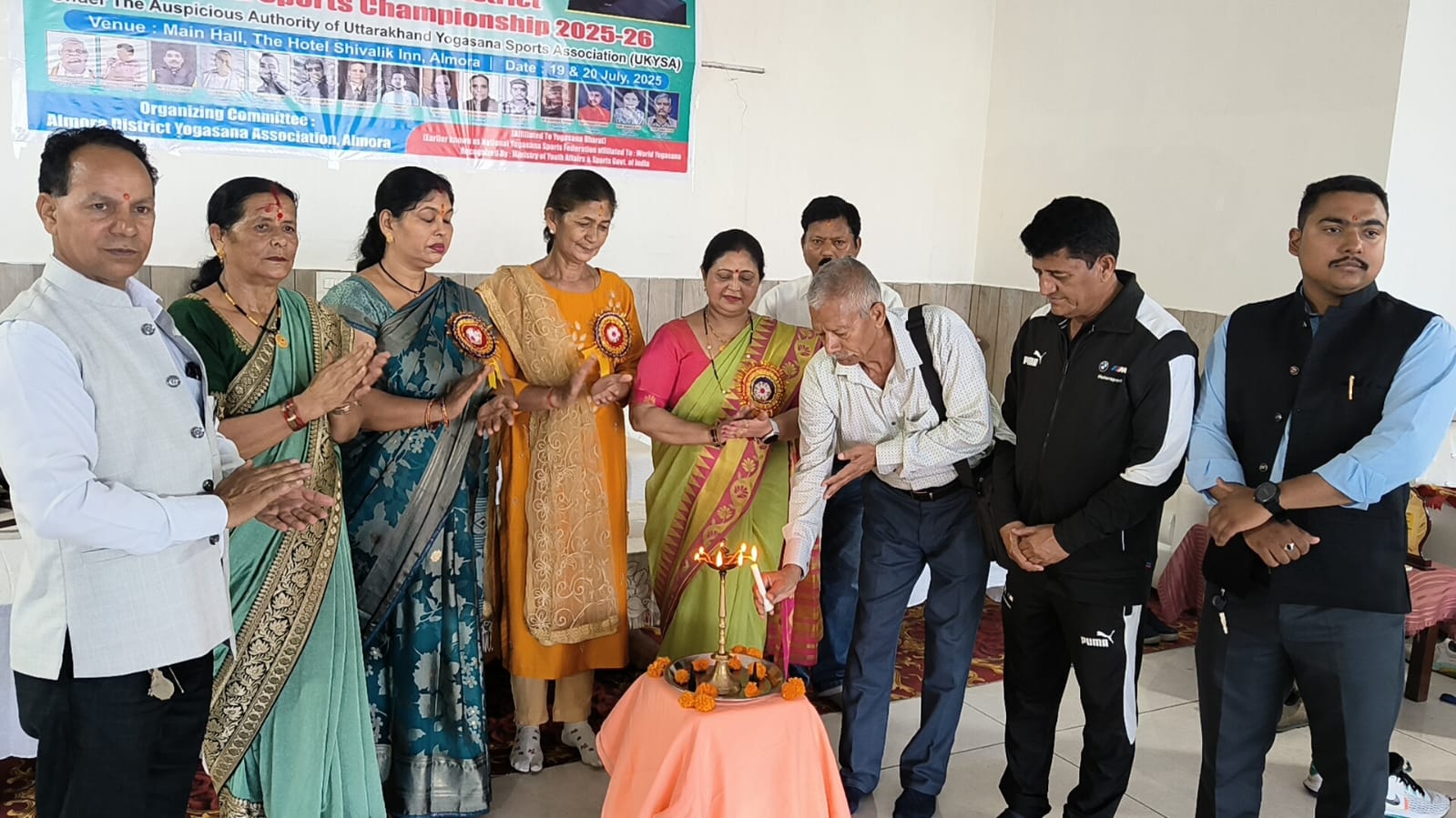 अल्मोड़ा-आज से अल्मोड़ा में दो दिवसीय योगासन प्रतियोगिता का आयोजन किया गया।अल्मोड़ा डिस्ट्रिक्ट योगासन एसोसिएशन अल्मोड़ा द्वारा आयोजित उत्तराखंड योगासन स्पोर्ट्स एसोसिएशन के तत्वाधान में दो दिवसीय योगासन प्रतियोगिता शनिवार को अल्मोड़ा के होटल शिवालिक के मुख्य हाल में प्रारम्भ हुई।मुख्य अतिथि के रूप में राधा बिष्ट महिला जिलाध्यक्ष कांग्रेस द्वारा प्रतियोगिता का उद्घाटन किया गया।साथ ही विशिष्ट अतिथि के रूप मे एवं अतिथि के रूप में गण मान्य व्यक्ति उपस्थित रहे।प्रतियोगिता आयोजन समिति के महासचिव कनक नेगी ताइक्वांडो खिलाड़ी ने मुख्य अतिथि का बैज अलंकृत कर एवं कमल कुमार बिष्ट आयोजक मंडल के महासचिव ने फूलों का गुलदस्ता प्रदान कर स्वागत सम्मान किया।कार्यक्रम की अध्यक्षता आयोजन समिति के अध्यक्ष डॉ महेंद्र सिंह मेहरा प्रधानाचार्य हरिदत्त पेटशाली इंटर कॉलेज चितई अल्मोड़ा द्वारा की गयी और विशिष्ट अतिथि हेम लता वर्मा अध्यापिका को प्रतीक चिन्ह और फूलों का गुलदस्ता भेंट कर सम्मानित किया गया।मुख्य अतिथि, विशिष्ट अतिथि,अतिथि गणों में नारायण सिंह रौतेला,चंद्र शेखर सिराडी,मंजू जोशी ,तुलसी सिराड़ी को कमल जोशी ताइक्वांडो कोच, यशपाल भट्ट प्रशिक्षक,अनंत बिष्ट योग प्रशिक्षक ताइक्वांडो कोच द्वारा प्रतीक चिन्ह भेंट कर स्वागत अभिनंदन किया।सर्वप्रथम कार्यक्रम का उद्घाटन दीप प्रज्वलित कर किया गया।अल्मोड़ा डिस्ट्रिक्ट योगासन एसोसिएशन अल्मोड़ा के संयोजक जसोद सिंह बिष्ट मुख्य द्वारा अतिथि को शाल उड़ाकर उनका स्वागत सम्मान किया।कार्यक्रम के निर्णायक मंडल में अनंत बिष्ट,अमितेश,धारा वल्लभ पांडे ,डॉ महेंद्र सिंह मेहरा, गिरीश सिंह अधिकारी,अजय,कविता बिष्ट शामिल रहे।पांचवीं जिला योगासन प्रतियोगिता के पदक विजेता आगामी राज्य प्रतियोगिता के लिए चयनित होकर अपने जिले का प्रतिनिधित्व करेंगे।जिला सचिव गिरीश सिंह अधिकारी ने बताया कि प्रतियोगिता में लगभग 50 योग साधकों ने प्रतिभाग किया जिसमे रिदमिक,ट्रेडिशनल,आर्टिस्टिक वर्ग में 10 वर्ष की आयु से ऊपर एवं 55 वर्ष की आयु तक के योग साधकों ने प्रतिभाग किया।आयोजन समिति के महासचिव कमल कुमार बिष्ट ने जानकारी दी कि इस प्रतियोगिता का उद्देश्य योग को आम जनता तक पहुंचाने के साथ-साथ आज योग को खेल के रूप में राष्ट्रीय,अंतरराष्ट्रीय स्तर पर खिलाड़ियों को तैयार कर उन्हें अवसर प्रदान करना और अच्छा प्रशिक्षण,नेतृत्व,मार्गदर्शन देकर पदक जीतने के लिए सक्षम बनाना है।उद्घाटन मैच सब जूनियर वर्ग में नव्या भाकुनी ने आर्टिस्टिक एकल में और श्रेया आर्टिस्टिक एकल में जीतकर अगले चक्र में प्रवेश किया।