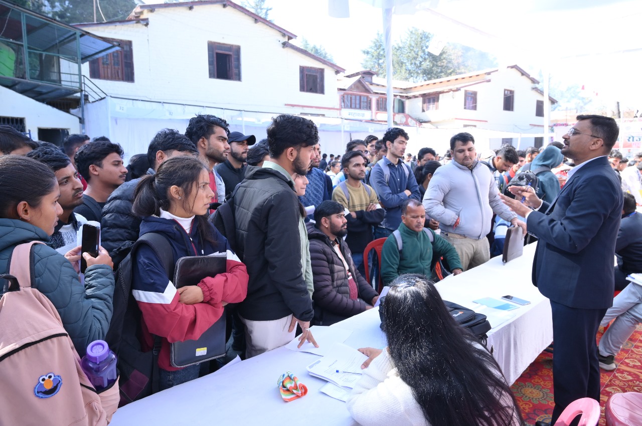 अल्मोड़ा-सेवायोजन अधिकारी विक्रम ने बताया कि राज्य गठन के रजत जयन्ती वर्ष के उपलक्ष्य में एवं जिलाधिकारी अंशुल सिंह के आदेशों के अनुपालन में आज क्षेत्रीय सेवायोजन कार्यालय मॉडल कैरियर सेन्टर अल्मोडा द्वारा पूर्वाह 10 बजे से अपराह्न 3 बजे तक सोबन सिंह जीना परिसर अल्मोड़ा में एक दिवसीय वृहद रोजगार मेले का आयोजन किया गया।मुख्य कार्यक्रम का उद्घाटन जिला पंचायत अध्यक्षा हेमा गैड़ा,मुख्य विकास अधिकारी रामजी शरण शर्मा, माननीय महापौर नगर निगम, अल्मोड़ा अजय वर्मा,दर्जा प्राप्त मंत्री उत्तराखण्ड सरकार गंगा बिष्ट,पूर्व अध्यक्ष जिला सहकारी बैंक लि० अल्मोडा ललित लटवाल तथा निदेशक सोबन सिंह जीना विश्विद्यालय, अल्मोडा द्वारा किया गया तथा मुख्य अतिथियों द्वारा अपने संबोधन में युवाओं के साथ अपने अनुभवों को साझा किया गया। वक्ताओं ने इस ओर प्रेरित किया गया कि किसी भी सफलता को प्राप्त करने के लिये कड़ी मेहनत और संघर्ष अनिवार्य रूप से करने पड़ते हैं।उन्होंने वृहद रोजगार मेले में शामिल युवाओं से यह भी आह्वान किया कि उत्तराखण्ड को समृद्ध,सशक्त एवं विकसित बनाना है तो नशे से दूरी अनिवार्य होगी अन्यथा न केवल वर्तमान बल्कि भावी पीढी भी नशे का शिकार होकर विकास के मार्ग से भटक जायेगी।उन्होने लक्ष्य निर्धारित करते हुये सतत प्रयास करने तथा सफलता प्राप्त होने तक मेहनत करते रहने को मूल मंत्र बताया।मुख्य विकास अधिकारी द्वारा बेरोजगार युवाओं को नवीन स्किल सीखने एवं अपस्किलिंग हेतु प्रोत्साहित किया गया।उपजिलाधिकारी संजय कुमार ने नियोजको को सेवायोजन विभाग के ओर से प्रमाण पत्र एवं स्मृति चिन्ह भी वितरित किये।इस रोजगार मेले के दौरान सेवायोजन कर्यालय के द्वारा नेशनल कैरियर सर्विस पोर्टल में मेले में शामिल युवाओं का पंजीकरण करवाया गया।इस रोजगार मेले में लगभग 1455 से भी अधिक हाईस्कूल,