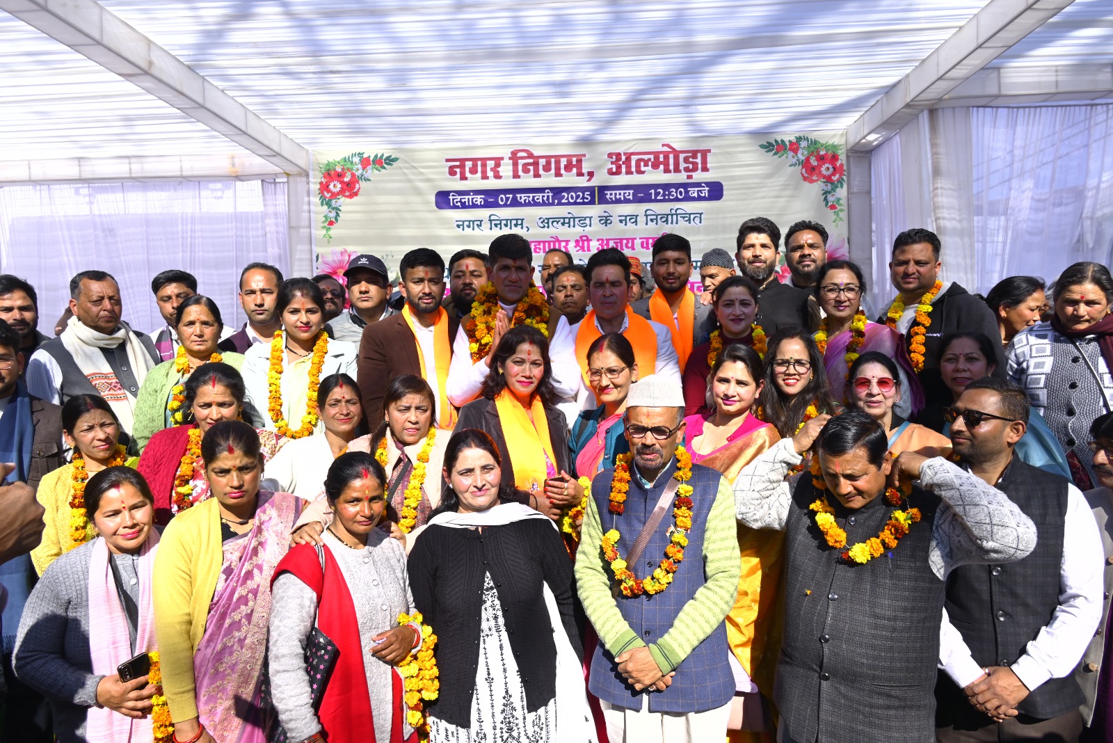 अल्मोड़ा-आज नगर निगम अल्मोड़ा का शपथ ग्रहण समारोह रैमजे इण्टर कालेज के प्रांगण में सम्पन्न हुआ।सर्वप्रथम जिलाधिकारी आलोक कुमार पाण्डेय ने नव निर्वाचित मेयर अजय वर्मा को पद एवं गोपनीयता की शपथ दिलायी। तत्पश्चात् मेयर 40 नवनिर्वाचित पार्षदों ने शपथ ली।इस अवसर पर मेयर अजय वर्मा ने उपस्थित लोगो को विश्वास दिलाया कि पार्षदों एवं जिला स्तरीय अधिकारियों के सहयोग से अल्मोड़ा नगर निगम को पारदर्शी एवं जनता की जवाबदेह बनाने का पूर्ण प्रयास किया जायेगा। उन्होंने कहा कि केन्द्र सरकार एवं राज्य सरकार की मदद से नगर की व्यवस्था एवं विकास कार्य कराये जायेंगे।इस अवसर पर जिलाधिकरी आलोक कुमार पाण्डेय ने कहा कि यह शहर सांस्कृतिक एवं पर्यटन की दृष्टि से महत्वपूर्ण स्थान रखता है। उन्होंने कहा कि यहॉ पर आगामी होली महोत्सव कराने के प्रयास किये जायेंगे तथा आने वाले दशहरा महोत्सव को भव्य रूप से मनाया जायेगा,जिसका व्यापक प्रचार-प्रसार किया जायेगा जिससे यहॉ पर पर्यटन को बढ़ावा मिल सके। उन्होंने उपस्थित लोगों से कहा कि नगर में जो मकान एवं दुकान पुरानी शैली में बनाये गये है उन्हें हमें संजोकर रखना होगा।इस शपथ समारोह कार्यक्रम में विधायक जागेश्वर मोहन सिंह माहरा,पूर्व विधायक रघुनाथ सिंह चौहान, कैलाश शर्मा,भाजपा जिलाध्यक्ष रमेश बहुगुणा,निर्वतमान पालिकाध्यक्ष प्रकाश चन्द्र जोशी, वरिष्ठ पुलिस अधीक्षक देवेन्द्र पींचा,मुख्य विकास अधिकारी दिवेश शाशनी,सहायक नगर आयुक्त भरत त्रिपाठी सहित अन्य गणमान्य लोग उपस्थित रहे।इस अवसर पर नटराज गु्रप के बच्चों द्वारा रंगारंग कार्यक्रम प्रस्तुत किये गये।इस कार्यक्रम का संचालन विद्या कर्नाटक एवं नवजोत जोशी ने संयुक्त रूप से किया।