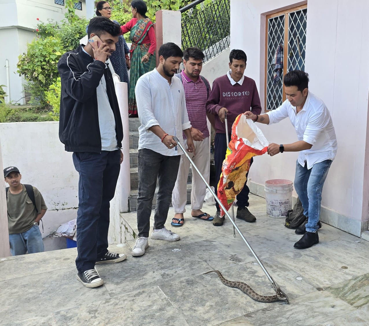 अल्मोड़ा-आज खोल्टा के एक घर में रसेल वाइपर प्रजाति का सांप घुस गया जिसकी सूचना स्थानीय नागरिक दिनेश जोशी द्वारा भाजपा नगर अध्यक्ष अमित साह मोनू को दी गयी।उसके बाद तत्काल भाजपा नगर अध्यक्ष अमित साह मोनू,सामाजिक कार्यकर्ता अभिषेक जोशी, गोलू भट्ट, वन विभाग के वन आरक्षी राहुल मनराल एवं श्रमिक नीरज नेगी मौके पर पहुंचे एवं सांप का सफल रेस्क्यू कर उसे जंगल में छोड़ दिया गया।अमित साह ने बताया कि रसेल वाइपर खतरनाक जहरीले सांपों में एक माना जाता है जो कि अब पहाड़ों में भी पाया जाने लगा है।इस रेस्क्यू के उपरांत भाजपा नगर अध्यक्ष अमित साह मोनू एवं वहां के लोगों द्वारा वन विभाग का आभार जताया गया।