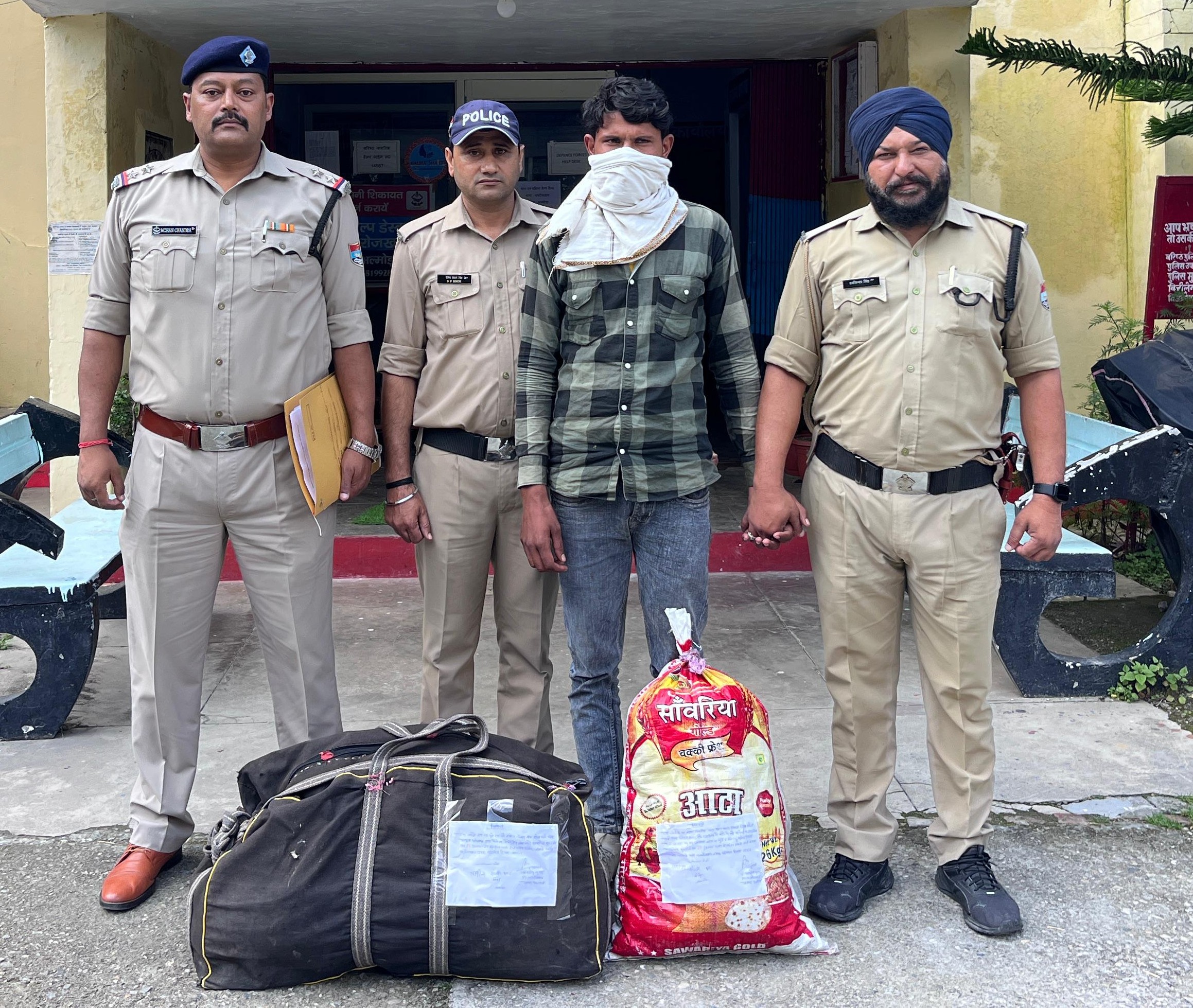 अल्मोड़ा-देवेन्द्र पींचा एसएसपी अल्मोड़ा द्वारा नशे के विरुद्ध जीरो टॉलरेन्स अपनाते हुए सभी थानाध्यक्षों को मादक पदार्थों की धरपकड़ तेज कर तस्करों के विरुद्ध कड़ी कार्यवाही करने के सख्त निर्देश दिये गये है।इसी क्रम में बीती रात अपर पुलिस अधीक्षक हरबन्स सिंह व सीओ रानीखेत विमल प्रसाद के पर्यवेक्षण में 2 अलग-अलग मामलों में थाना भतरौजखान व थाना सल्ट ने 3.61 लाख कीमत के 14.455 किग्रा अवैध गांजे के साथ 03 तस्करों को गिरफ्तार किया।पहले मामले में थाना भतरौजखान में थानाध्यक्ष भतरौजखान अवनीश कुमार के नेतृत्व में पुलिस टीम द्वारा दिनांक 18/09/2025 की सायं दौराने वाहन चैकिंग छोटी घट्टी के पास भिकियासैण बासोट मार्ग की ओर से आ रहे मोटर साइकिल संख्या Up21CM1957 में सवार सलीम के कब्जे से 6.860 किग्रा अवैध गांजा बरामद करते हुए अभियुक्त को गिरफ्तार कर थाना भतरौजखान में धारा 8/20/60 एन डी पी एस एक्ट के अन्तर्गत अभियोग पंजीकृत किया गया। मोटर साइकिल को सीज किया गया।अभियुक्त कपड़ों की फेरी लगाता है और गांजे को भिकियासैंण की ओर से ला रहा था जिसे फेरी के कपड़ों के बीच छुपाकर मुरादाबाद ले जाने की फिराक में था।अभियुक्त का विवरण सलीम उम्र 30 वर्ष पुत्र जमील अहमद निवासी ग्राम मंझरा वेरखेडा पो0 मानपुर थाना भगतपुर जिला मुरादाबाद (उ0प्र0) हैं।बरामदगी में 6.860 किलो गांजा बरामद हुआ हैं जिसकी कीमत 1,71,500 रुपये हैं।भतरौजखान पुलिस टीम में थानाध्यक्ष भतरौजखान अवनीश कुमार,हेड कानि0श्रवण सैनी, हेड कानि0 नारायण सिंह शामिल रहे।दूसरे मामले में