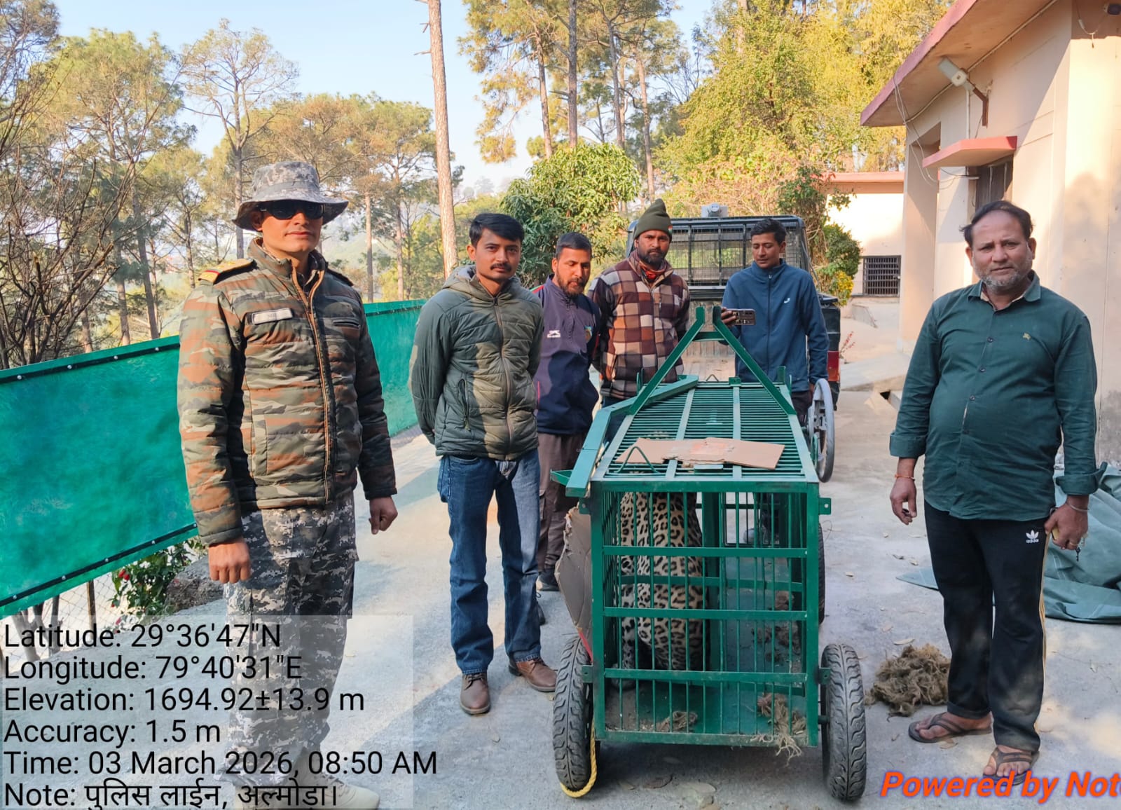 अल्मोड़ा-आज प्रातः अल्मोड़ा स्थित पुलिस लाइ में वन विभाग द्वारा लगाए गए पिंजड़े में करीब 6 वर्ष का नर तेंदुआ पकड़ा गया।तेंदुए के पकड़े जाने से क्षेत्र में दहशत के माहौल के बीच राहत की सांस ली गई।जानकारी के अनुसार पिछले कुछ दिनों से पुलिस लाइन व आसपास के इलाकों में तेंदुए की आवाजाही की सूचना मिल रही थी।स्थानीय लोगों ने इसकी सूचना वन विभाग को दी, जिसके बाद विभागीय टीम ने एहतियातन पिंजड़ा लगाया था। आज सुबह तेंदुआ उसी पिंजड़े में कैद पाया गया।वन विभाग की टीम ने मौके पर पहुंचकर तेंदुए का प्राथमिक स्वास्थ्य परीक्षण किया।अधिकारियों के मुताबिक,तेंदुआ स्वस्थ है। इसके बाद तेंदुवे को रेशक्यू सेंटर ले जाया गया।वन विभाग ने आम जनता से अपील की है कि जंगली जानवर दिखने पर घबराएं नहीं बल्कि तुरंत विभाग को सूचना दें तथा भीड़ एकत्र न करें।तेंदुए के पकड़े जाने के बाद क्षेत्रवासियों ने राहत जताई है।