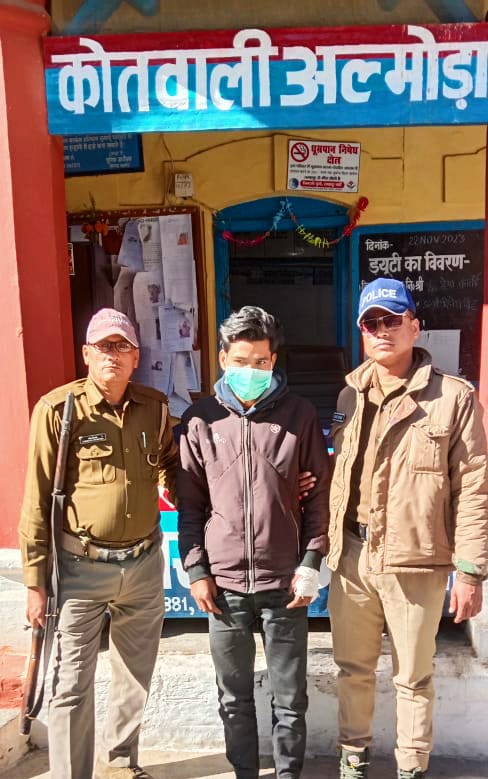 अल्मोड़ा-रामचन्द्र राजगुरु वरिष्ठ पुलिस अधीक्षक अल्मोड़ा द्वारा ड्रग्स फ्री देवभूमि मिशन 2025 को सफल बनाने के हेतु सभी सीओ,थाना/चौकी प्रभारियों एवं एसओजी/एएनटीएफ टीम को नशे के विरुद्ध लगातार अभियान चलाकर जनपद में मादक पदार्थों की तस्करी/बिक्री करने वाले नशा तस्करों पर सतर्क दृष्टि रखकर कड़ी कार्यवाही किये जाने के सख्त निर्देश दिये गये है।सीओ अल्मोड़ा/ऑपेरशन विमल प्रसाद के पर्यवेक्षण व प्रभारी निरीक्षक अरुण कुमार कोतवाली अल्मोड़ा के नेतृत्व में चौकी धारानौला पुलिस टीम दिनांक-21.11.2023 को चौकी क्षेत्र में गश्त पर थी,गणेशीगैर गणेश मन्दिर से 200 मीटर विश्वनाथ की तरफ एक युवक कुछ युवकों को आदान प्रदान करता हुआ दिखाई दिया,जो पुलिस टीम को देखकर भागने लगा,कुछ दूरी पर पुलिस टीम द्वारा पकड़ लिया गया,युवक के कब्जे से 05.17 ग्राम स्मैक और स्मैक बेचकर अर्जित किये हुए 14500 रु0 बरामद होने पर अभियुक्त राहुल मनराल उर्फ गुड्डू को गिरफ्तार करते हुए कोतवाली अल्मोड़ा में एन0डी0पी0एस0 एक्ट के तहत एफआईआर पंजीकृत कर आवश्यक कार्यवाही की गई है।