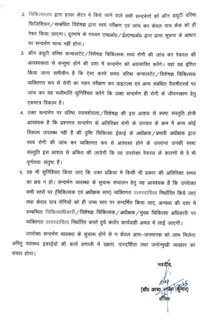 वरिष्ठ अधिकारी होंगे जवाबदेह–अनुचित या गैर-जरूरी रेफरल पाए जाने पर संबंधित CMO या CMS को उत्तरदायी ठहराया जाएगा।