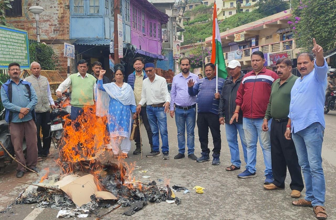 अल्मोड़ा-अंकिता भण्डारी की निर्मम हत्या के विरोध में आज अल्मोड़ा कांग्रेस ने जिलाध्यक्ष पीताम्बर पाण्डेय एवं नगर अध्यक्ष पूरन सिंह रौतेला के संयुक्त नेतृत्व में भाजपा सरकार का पुतला दहन कर अंकिता के हत्यारों को फांसी की सजा देने की मांग की।पुतला दहन से पूर्व कांग्रेसजनों ने जमकर प्रदर्शन करते हुए भाजपा सरकार के खिलाफ जमकर नारेबाजी भी की।इस अवसर पर जिलाध्यक्ष पीताम्बर पाण्डेय ने कहा कि उत्तराखण्ड राज्य में कानून व्यवस्था पूरी तरह से ध्वस्त हो चुकी है तथा बेटी बचाओ-बेटी पढ़ाओ का नारा देने वाली भाजपा सरकार में महिलाओं पर अत्याचार की घटनायें लगातार बढती जा रही हैं।भाजपा सरकार में अपराधियों को संरक्षण दिया जा रहा है।चीला बैराज स्थित भाजपा नेता के रिजार्ट में राज्य की बेटी अंकिता भण्डारी के साथ हुई जघन्य अपराध की घटना इसका जीता जागता उदाहरण है।नगर अध्यक्ष पूरन सिंह रौतेला ने कहा कि भाजपा की इस सरकार में कानून व्यवस्था पूरी तरह ध्वस्त हो चुकी है।अपराधियों के मन में भय नाम की चीज नहीं है।अंकिता हत्याकांड का अभियुक्त भी भाजपा नेता का पुत्र है।इस सरकार में हमारी बेटियां तक सुरक्षित नहीं हैं। उन्होंने कहा कि अंकिता भण्डारी के हत्यारोपियों को फास्ट ट्रैक कोर्ट में सुनवाई कर फांसी की सजा दी जानी चाहिए।प्रदर्शन एवं पुतला दहन में कांग्रेस जिलाध्यक्ष पीताम्बर पाण्डेय,नगर अध्यक्ष पूरन सिंह रौतेला,जिला वरिष्ठ उपाध्यक्ष तारा चन्द्र जोशी,जिला प्रवक्ता राजीव कर्नाटक,जिला सचिव दीपांशु पाण्डेय,प्रदेश सचिव परितोष जोशी,मोहन सिंह देवली,प्रदीप बिष्ट,विनोद वैष्णव,विक्रम सिंह,बची सिंह नेगी,विनोद सिंह,रमेश नेगी,राबिन भण्डारी,अरविन्द रौतेला,शहाबुद्दीन,जया जोशी सहित अनेकों लोग शामिल रहे।