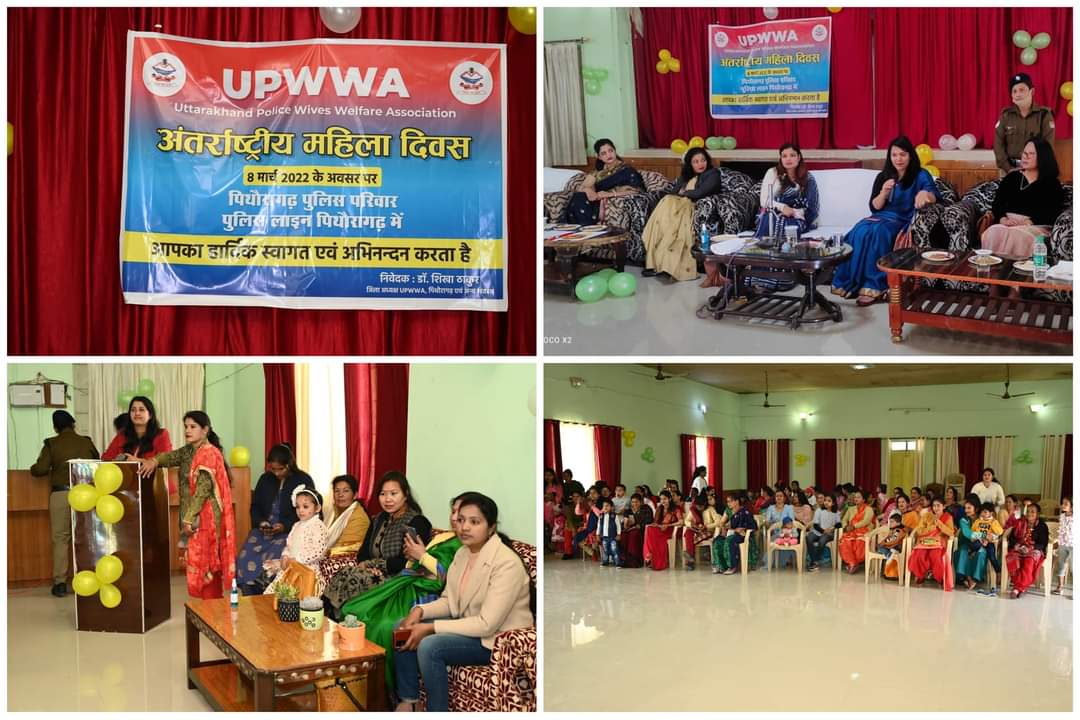 पिथौरागढ़-UPWWA की अध्यक्षा, श्रीमती अलकनन्दा अशोक की प्रेरणा से पुलिस अधीक्षक पिथौरागढ़ लोकेश्वर सिंह के निर्देशन में जिलाध्यक्ष UPWWA डॉ०शिखा ठाकुर धर्मपत्नी पुलिस अधीक्षक पिथौरागढ़ के पर्यवेक्षण में अन्तर्राष्ट्रीय महिला दिवस के अवसर पर पुलिस लाईन स्थित गौरी हॉल सभागार में पुलिस परिवार की महिलाओं व बच्चों के बीच विभिन्न प्रतियोगिताओं व सांस्कृतिक कार्यक्रमों का आयोजन किया गया। जिसमें मुख्य अतिथि के रूप में मुख्य विकास अधिकारी पिथौरागढ़ श्रीमती अनुराधा पाल द्वारा प्रतिभाग किया गया।कार्यक्रम में लगभग 35 महिलाओं/बच्चों ने प्रतिभाग किया। कार्यक्रम में उपस्थित समस्त महिलाओं व बच्चों को पुरूस्कार वितरित कर सम्मानित किया गया। UPWWA के तहत आयोजित कार्यक्रम से महिलाओं में काफी उत्साह व खुशी देखने को मिली तथा सभी ने उपवा की जिलाध्यक्ष डॉ० शिखा ठाकुर का आभार व्यक्त किया । इनके अतिरिक्त उक्त कार्यक्रम में श्रीमती अटेलो रोसो धर्मपत्नी प्रभागीय वनाधिकारी पिथौरागढ़,श्रीमती जिया बिष्ट धर्मपत्नी पुलिस उपाधीक्षक ऑप्स पिथौरागढ़,बॉक्सिंग कोच श्रीमती सुनीता रावत,प्रवक्ता (मनोवैज्ञानिक)श्रीमती गीता पाण्डे, सामाजिक कार्यकर्ता श्रीमती भावना नयाल,सामाजिक कार्यकर्ता श्रीमती हेमा थलाल,अध्यक्षा वन स्टॉप सेन्टर श्रीमती प्रेरिता गुन्ज्याल,प्रतिसार निरीक्षक पुलिस लाइन नरेन्द्र कुमार आर्या,उ०नि० उषा देव,प्रभारी महिला हैल्प लाइन उ०नि० रेनू सहित अन्य अधिकारी/कर्मचारी व पुलिस परिजन उपस्थित रहे।