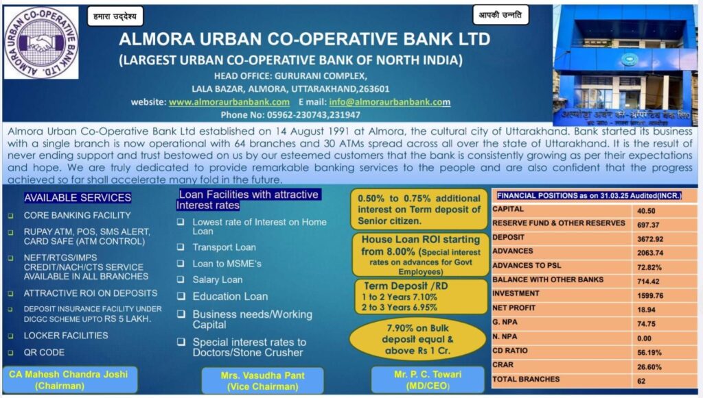 अल्मोड़ा-अल्मोड़ा जनपद में नवागत अपर जिलाधिकारी युक्ता मिश्रा ने गत दिवस अपना कार्यभार ग्रहण किया।कार्यभार ग्रहण करने के पश्चात अपर जिलाधिकारी ने कलेक्ट्रेट परिसर स्थित अपने कार्यालय में अधिकारियों एवं कर्मचारियों से परिचय प्राप्त किया तथा कार्यप्रणाली की जानकारी ली।इस अवसर पर उन्होंने कहा कि शासन की योजनाओं एवं जनकल्याणकारी कार्यक्रमों का प्रभावी क्रियान्वयन सुनिश्चित किया जाएगा।साथ ही उन्होंने टीम भावना के साथ कार्य करने पर बल देते हुए कहा कि आम जनता की समस्याओं के त्वरित समाधान हेतु संवेदनशीलता एवं तत्परता के साथ कार्य किए जाएंगे।कार्यप्रणाली को सुदृढ़ करना तथा कार्यों को पारदर्शिता और त्वरित गति से संपादित करना उनकी प्राथमिकताओं में शामिल है।
