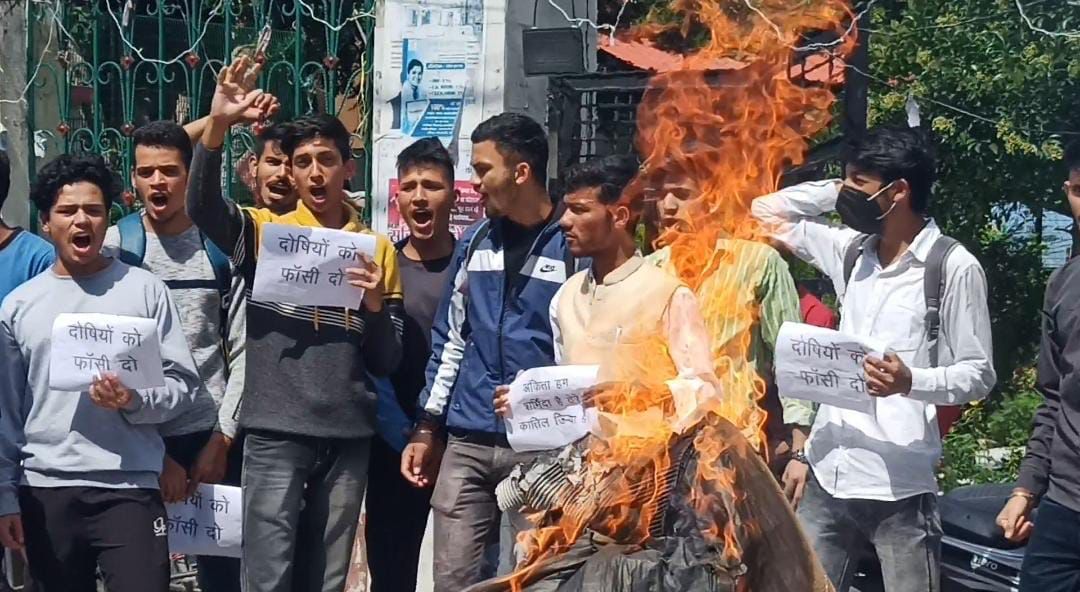 अल्मोड़ा-आज आर्यन छात्र संगठन ने अंकिता भण्डारी केस में लिप्त दोषियों का पुतला फूंका।वक्ताओं ने कहा कि जिस तरह से हमारी उत्तराखंड की बेटी की बर्बरता से हत्या कर दी गयी वो काफी दुखद घटना है।आर्यन छात्र संगठन ने अल्मोड़ा सरकार से तीन मांगे रखी है।जिसमे प्रथम मांग यह है कि इस केस को फ़ास्ट ट्रेक कोर्ट मे लाकर जल्द से जल्द दोषियों को फाँसी की सजा हो।दूसरी मांग यह है कि उत्तराखंड के सभी रिसॉर्ट्स मे नियमित छान बीन होती रहे जिससे आगे से ऐसी घटना देवभूमि उत्तराखंड में ना हो व तीसरी मांग यह है कि जितने भी अधिकारियों ने इस केस मे ढ़िलाई बरती,समय पर अंकिता की गुमशुदगी की कार्यवाही नही की उन सभी के खिलाफ भी सख्त कार्यवाही हो और जल्द से जल्द सरकार इन मांगों को माने वरना आर्यन छात्र संगठन पूरे प्रदेश भर में आंदोलन हेतु बाध्य होगा।कार्यक्रम मे आर्यन छात्र संगठन के जिलाध्यक्ष कमल कोरांगे,उज्जवल जोशी,गौरव भण्डारी,भुवन भण्डारी,भास्कर गोस्वामी,विनोद भंडारी,हर्षित भंडारी, हिमांशु भट्ट,पुनीत चौहान,सुधांशु मेहता,साहिल,अभिषेक पांडे,सुभाष नाथ,नंदन सिंह,मोहन नेगी,भुवन भंडारी,बलवंत,मयंक बगडवाल, उम्मीद सिंह धामी,हरीश भैसोडा, चिराग जोशी,विशाल बिष्ट,विशाल आर्या,सौरव बिष्ट आदि कार्यकर्ता मौजूद रहे।
