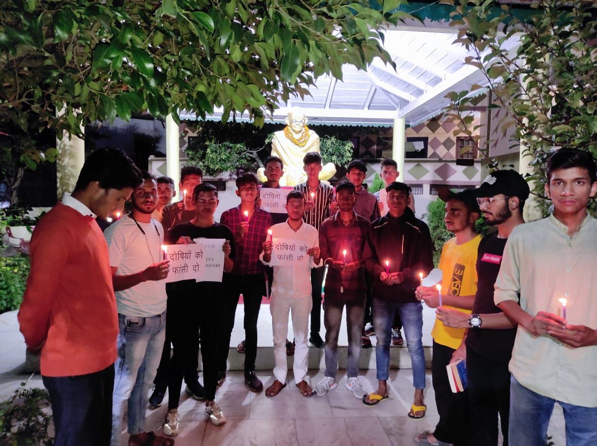 अल्मोड़ा-आज दिनाँक 23/09/2022 को आर्यन छात्र संगठन अल्मोड़ा द्वारा ऋषिकेश में अंकिता भंडारी के साथ हुई घटना के मामले में अंकिता भण्डारी को श्रद्धांजलि अर्पित की गयी व दोषियों को फाँसी की सजा हो इस बात की सरकार से गुहार लगाई गयी।संगठन के गौरव भण्डारी ने कहा अंकिता भंडारी के साथ हुई घटना ने ना सिर्फ मानवता को शर्मशार किया है बल्कि देवभूमि उत्तराखंड के शांत माहौल व पवित्रता को भी कम किया है।दोषियों को जरूर गिरफ्तार कर लिया गया है परंतु दोषियों को फाँसी की सजा हो।चौघानपाटा स्थित गांधी पार्क मे आर्यन छात्र संगठन के कार्यकर्ताओं द्वारा मोमबत्ती जलाकर श्रद्धाजंलि अर्पित की गई।कार्यक्रम में जिलाध्यक्ष कमल कोरंगा,उज्जवल जोशी,गौरव भण्डारी,भुवन भण्डारी,संजू,रजत मेहरा,निशांत,भास्कर गोस्वामी, नेगी,बलवंत नेगी,चिराग जोशी,नंदन सिंह,पुनीत सिंह चौहान,विशाल बिष्ट,उमड़ धामी,कपिल,हरीश भैसोड़ा आदि लोग मौजूद रहे।