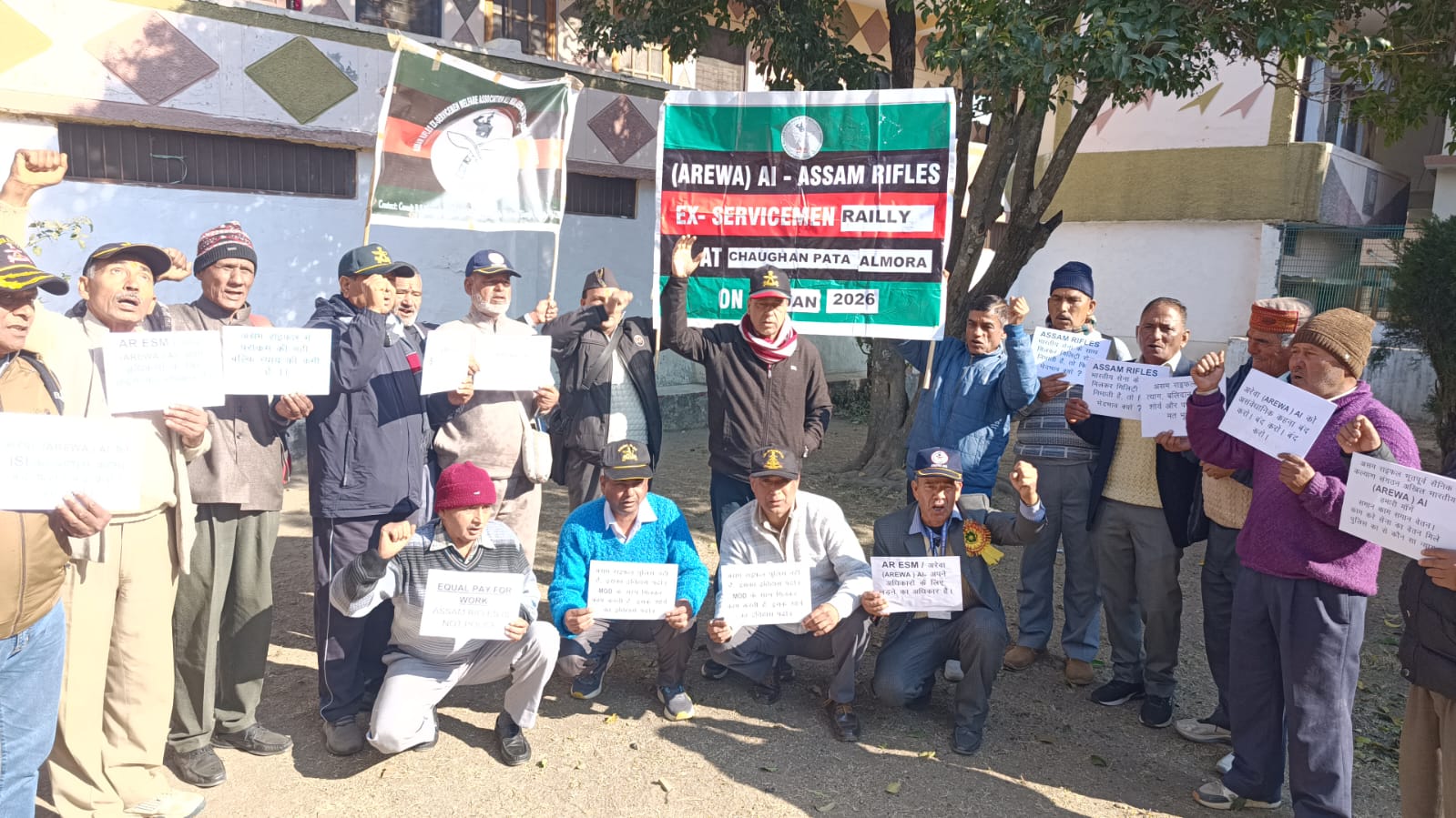 अल्मोड़ा-असम राइफल भूतपूर्व कल्याण संगठन अखिल भारतीय (एरेवा) की जिला इकाई अल्मोड़ा के पूर्व सैनिकों ने शुक्रवार को 11 सूत्री मांगों को लेकर शांतिपूर्ण विरोध रैली निकाली। रैली सुबह 11 बजे से 12 बजे तक चौघानपाटा से शिखर होटल तक निकाली गई। इसके बाद जिलाधिकारी के माध्यम से प्रधानमंत्री को ज्ञापन भेजकर समस्याओं के समाधान की मांग की गई। रैली का नेतृत्व राष्ट्रीय सचिव सूबेदार एम. सी. तिवारी, अध्यक्ष सूबेदार राम सिंह रावत, सचिव नायब सूबेदार बिशन सिंह बिष्ट और उपाध्यक्ष सूबेदार मोहन सिंह नेगी ने किया। कार्यक्रम में बड़ी संख्या में पूर्व सैनिकों के साथ वीर नारियों और मातृशक्ति ने भी भाग लिया। सभा में वक्ताओं ने कहा कि असम राइफल लंबे समय से कई मुद्दों पर उपेक्षा का सामना कर रही है। उन्होंने बल को एक्स-सर्विसमैन का दर्जा देने, समान कार्य के बदले समान वेतन लागू करने और कथित सौतेले व्यवहार को समाप्त करने की मांग रखी। ज्ञापन में यह भी उल्लेख किया गया कि मुख्यालय डीजीएआर शिलांग की ओर से एरेवा संगठन को कथित रूप से प्रताड़ित किए जाने और पेंशन बंद करने जैसी धमकी दिए जाने के शब्दों पर हस्तक्षेप किया जाए। पूर्व सैनिकों ने चेतावनी दी कि यदि मांगों पर ध्यान नहीं दिया गया तो आगे राष्ट्रपति को भी ज्ञापन भेजा जाएगा। रैली में सूबेदार एम. सी. तिवारी, सूबेदार मेजर नारायण सिंह पैनवाल, सूबेदार मोहन सिंह नेगी, नायब सूबेदार बिशन सिंह बिष्ट, सूबेदार राम सिंह बिष्ट, सूबेदार राम सिंह रावत, सूबेदार चन्दन सिंह पैनवाल, हवलदार गणेश सिंह बिष्ट, सूबेदार हरीश चंद्र भट्ट, हवलदार विजय शाह और राइफलमैन अर्जुन सिंह सहित अन्य पूर्व सैनिक मौजूद रहे।
