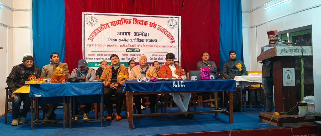अल्मोड़ा-अशासकीय माध्यमिक शिक्षक संघ का प्रथम वार्षिक सम्मेलन,शैक्षिक उन्नयन विचार गोष्ठी एवं जिला कार्यकारिणी का चुनाव अल्मोड़ा इंटर कालेज के सभागार में हुआ।सम्मेलन के मुख्य अतिथि विधायक मनोज तिवारी एवं विशिष्ट अतिथि निर्वतमान नगर पालिका अध्यक्ष प्रकाश चन्द्र जोशी,मुख्य शिक्षा अधिकारी अन्नेय सयाना,जिला शिक्षा अधिकारी माध्यमिक चन्दन सिंह बिष्ट रहे।इस अवसर पर कार्यक्रम के मुख्य अतिथि विधायक बारामण्डल अल्मोड़ा मनोज तिवारी को दस सूत्रीय मांग पत्र सौंपा गया जिस पर विधायक ने पूर्ण आश्वासन दिया कि सभी मांगों को जिले से लेकर विधानसभा तक ले जाकर समाधान करवाया जाएगा।विशिष्ट अतिथि प्रकाश जोशी द्वारा सभी को संगठित रहने की सलाह दी।सभा का संचालन डा. महेन्द्र सिंह महरा तथा हीरा सिंह मेहरा ने किया।सम्मेलन के द्वितीय सत्र में नवीन कार्यकारिणी का गठन हुआ जिसमें सभी पदाधिकारी निर्विरोध चुने गए।नवीन कार्यकारिणी में हीरा सिंह मेहरा अध्यक्ष,विजय सिंह गेड़ा महामन्त्री,दीवान सिंह रावल कोषाध्यक्ष,प्रकाश चन्द्र खोलिया वरिष्ठ उपाध्यक्ष,माया जोशी महिला उपाध्यक्ष,राजू महंत, पंकज मेर तथा दीपक नगरकोटी उपाध्यक्ष,संयुक्त मन्त्री,शिवराज सिंह,योगेन्द्र सिंह रौतेला,प्रीति बोरा,हरीश चंद्र उप्रेती,भुवन चंद्र जोशी तथा डी के कोहली संयुक्त मंत्री,अशोक कुमार रावत आयव्यय निरीक्षक चुने गए।चुनाव अधिकारी मनमोहन सिंह नेगी तथा महेन्द्र सिंह महरा रहे। कार्यक्रम की अध्यक्षता जिलाध्यक्ष हीरा सिंह मेहरा ने की।कार्यक्रम में नरेंद्र सिंह बिष्ट, लोकेश सिंह बिष्ट,कैलाश गिरी, संजय जोशी,दीवान राम,गोविन्द सिंह आदि सहित अशासकीय विद्यालयों के शिक्षक मौजूद रहे।