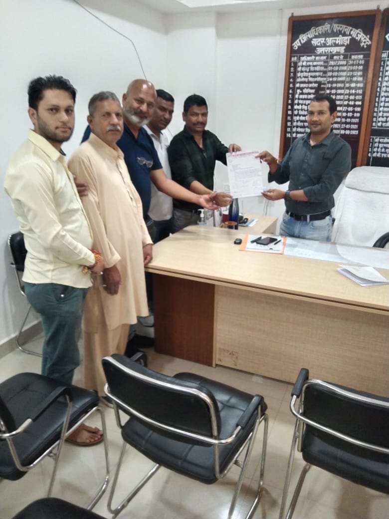 अल्मोड़ा-आज अल्मोड़ा व्यापार मंडल ने मुख्यमंत्री पुष्कर सिंह धामी को उपजिलाधिकारी के माध्यम से ज्ञापन प्रेषित किया जिसमें कहा गया कि उच्च न्यायालय के आदेश का हवाला देकर अतिक्रमण के नाम पर संबंधित विभाग द्वारा स्थानीय व्यापारियों और लोगो को डराया जा रहा है।ज्ञापन में कहा गया कि आज से दो दिवसीय विधानसभा सत्र का आरंभ हो रहा है शीघ्र अति शीघ्र इस मामले का समाधान हो।मुलाकात कर ज्ञापन प्रेषित करने वालों में व्यापार मंडल जिलाध्यक्ष सुशील साह,जिला महामंत्री भैरव गोस्वामी,प्रदेश उपाध्यक्ष किशन गुरूरानी,अमन नज्जोन आदि उपस्थित रहे।