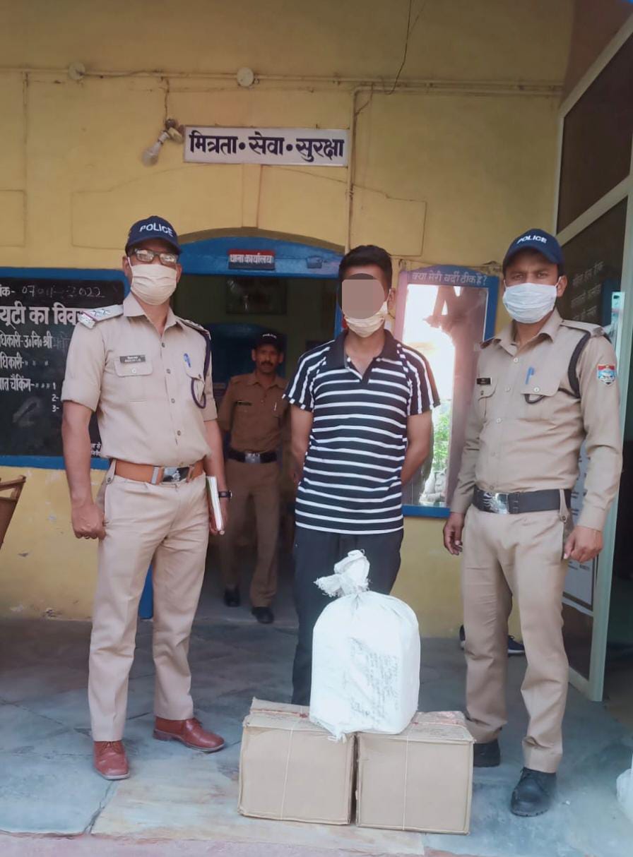 अल्मोड़ा-सुश्री ओशीन जोशी पुलिस उपाधीक्षक आँप्स द्वारा समस्त थाना/ चौकी प्रभारियों एवं एस०ओ०जी० टीम को अवैध मादक पदार्थों की तस्करी,अवैध शराब की बिक्री एवं तस्करी पर अंकुश लगाये जाने हेतु सघन चैकिंग अभियान चलाकर कार्यवाही करने के निर्देश दिये गये है।दिनांक 8.04.2022 को प्रभारी चौकी एनटीडी बिशन लाल आरक्षी राजेश भट्ट एसओजी,दिनेश नगरकोटी एसओजी द्वारा दौराने चैकिंग बल्डोटी बैण्ड से आगे गंगनाथ मंदिर के पास संदिग्ध प्रतित होने पर वाहन संख्या यूपी 85 टी 9098 से 2 पेटियों में 27 बोतल,48 पव्वे अवैध देशी मसालेदार शराब कीमत 12,500रु बरामद कर कोतवाली अल्मोड़ा में मु०अ०सं० 34/22 धारा 60/72 आबकारी अधिनियम के अन्तर्गत अभियोग पंजीकृत कर आवश्यक कार्यवाही की जा रही है।