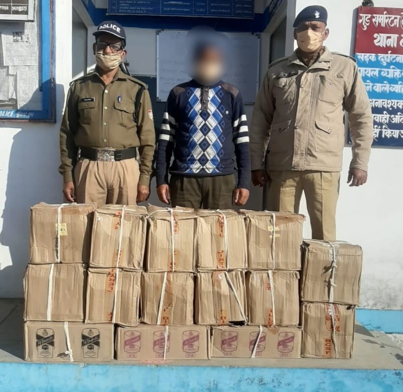 अल्मोड़ा-डा०मंजूनाथ टीसी एसएसपी अल्मोड़ा द्वारा कार्यभार ग्रहण करते ही सभी थाना/ चौकी प्रभारियों तथा एसओजी को नशे के अवैध कारोबार के सौदागरों पर कड़ी कार्यवाही के निर्देश दिये गये है।जिसके अनुपालन में अल्मोड़ा पुलिस द्वारा कार्यवाही जारी है।दिनांक 19.12.2021 को एसओजी अल्मोड़ा तथा दन्या पुलिस द्वारा संयुक्त रूप से चैकिंग के दौरान चलनीछीना के पास भूपाल सिंह पुत्र बचे सिंह निवासी नौगांव थाना दन्या जिला अल्मोड़ा के ढाबे से 15 पेटी अवैध शराब देशी/विदेशी (कीमत 62880.00) बरामद करने पर अभियुक्त को मौके से गिरफ्तार कर आवश्यक कार्यवाही की गयी।उक्त सम्बन्ध में थानाध्यक्ष दन्या सुशील कुमार ने बताया कि अभियुक्त अपने ढ़ाबे में शराब परोसने के अवैध कारोबार में लगा हुआ था सूचना पर पुलिस टीम द्वारा त्वरित कार्यवाही कर अभियुक्त को गिरफ्तार कर लिया गया है।पुलिस टीम में थानाध्यक्ष दन्या सुशील कुमार,का० अरविंद कुमार,का० सुरेंद्र सिंह,का० प्रेम कुमार,का०दिनेश नगरकोटी एसओजी,का० राजेश भट्ट एसओजी,का० दीपक खनका एसओजी शामिल रहे।