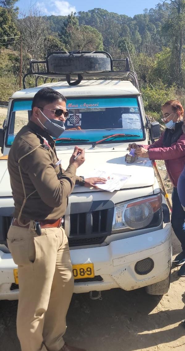 अल्मोड़ा-विधान सभा चुनाव को निष्पक्ष,सकुशल एवं शांतिपूर्ण सम्पन्न कराने हेतु डॉ० मन्जूनाथ टीसी,वरिष्ठ पुलिस अधीक्षक अल्मोड़ा के निर्देशन में SHO/SO/SOG/SST/FST को जनपद की सीमाओं में बने बैरियरों एवं अपने-अपने क्षेत्रों में लगातार सघन चैकिंग की जा रही है,फलस्वरूप क्षेत्राधिकारी ऑपरेशन ओशिन जोशी के नेतृत्व में एसओजी टीम द्वारा थाना सोमेश्वर क्षेत्रान्तर्गत कुल 12 पेटी अंग्रेजी शराब (कीमत- 73800 रूपये) बरामद की गयी है।दिनॉक- 7.02.2022 को पुलिस उपाधीक्षक ऑपरेशन के नेतृत्व में उ०नि० राजेन्द्र कुमार सोमेश्वर,का० चन्दन राणा सोमेश्वर,का० दीपक खनका एसओजी,का० संदीप एसओजी टीम द्वारा छापेमारी अभियान में ग्राम अझौड़ा में कैलाश सिंह पुत्र लाल सिंह निवासी ग्राम अझौड़ा सोमेश्वर के कब्जे से 5 पेटी अंग्रेजी शराब (कीमत- 36000 रूपये ) बरामद कर कैलाश सिंह को गिरफ्तार किया गया है।