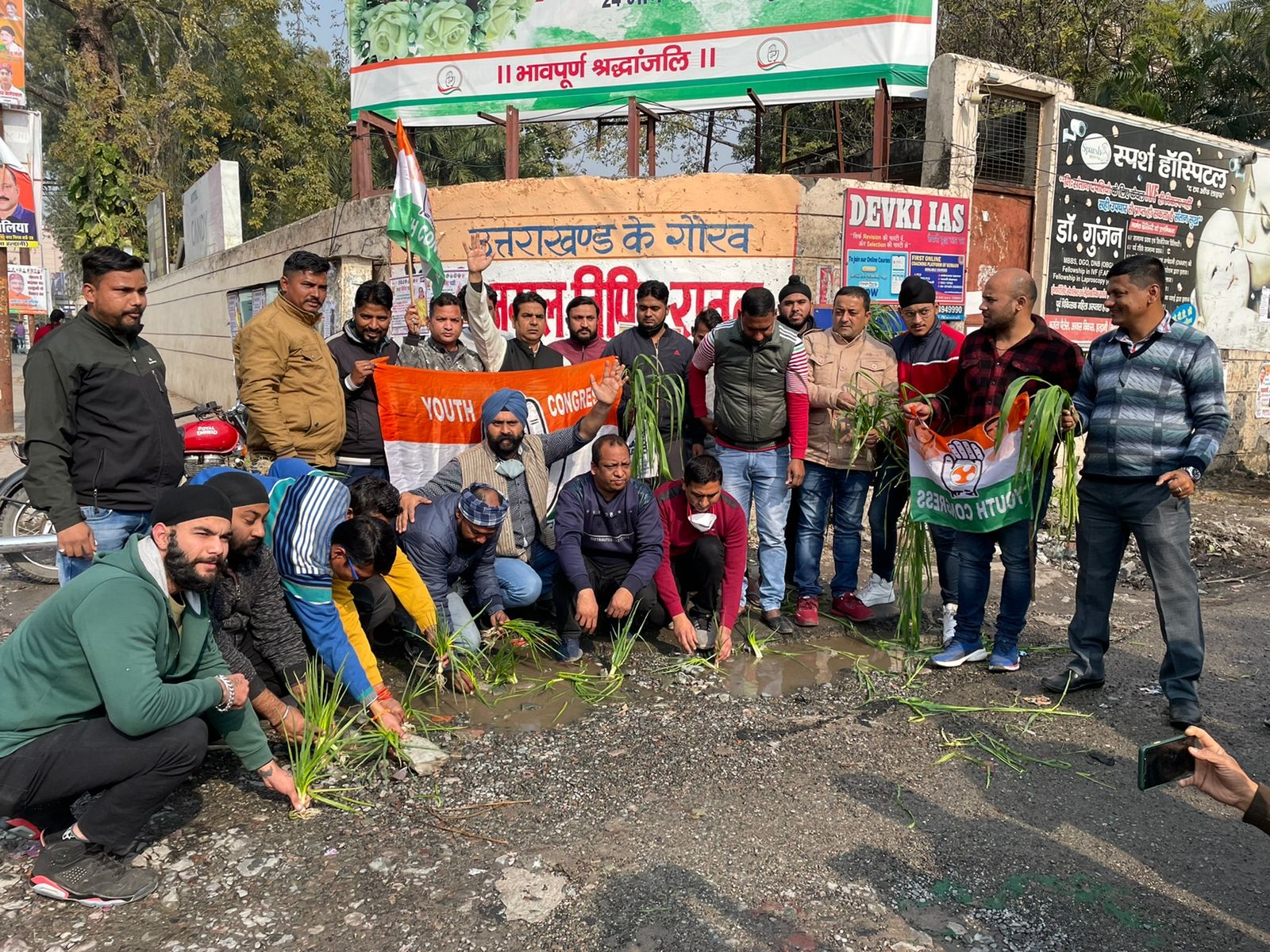 हल्द्वानी-आज युवा कांग्रेस कार्यकर्ताओं ने हल्द्वानी शहर के बदहाल व जर्जर मार्गो के विरोध में भाजपा सरकार व प्रशासन के खिलाफ प्रदर्शन किया।युवा कांग्रेस कार्यकर्ताओं ने बियरशिबा स्कूल के सामने मेन रोड में मार्ग में हुए गड्ढों पर प्याज,पालक व बरशिम लगाकर रोष प्रकट किया।इस दौरान प्रदेश उपाध्यक्ष गुरुप्रीत सिंह ने कहा कि भाजपा की कथनी और करनी बिल्कुल विपरीत है।इनकी डबल इंजन सरकार सिर्फ जनता का उत्पीड़न कर सकती हैं। जिनका विकास से कोई लेना देना नही है।जिला अध्यक्ष गजेन्द्र सिंह गौनिया ने कहा कि मार्गो की हालत जर्जर हैं। मार्ग में गड्डे हैं या गड्डो में मार्ग यह लगाना मुश्किल है।इस दौरान विधानसभा अध्यक्ष त्रिलोक सिंह कठायत,जिला उपाध्यक्ष हेंमत कुमार सूरज,सालिम सिद्दीकी,पूरन बिष्ट, सुमित कुमार,रिजवान हुसैन,तरन बिन्द्रा,इसरत अली,बबनित सिंह, मनीष चौहान,गोबिंद बिष्ट,पवन मेहता, अंकित परिहार,मनदीप सिंह,सलीम, रवि सागर,मानस बेलवाल,प्रदीप बिष्ट, आशीष कुडई,अभिषेक बिष्ट,शंकर कोहली,लक्ष्मीकांत,गुरकीरत सिंह, जीवन बिष्ट आदि कार्यकर्ता मौजूद थे।