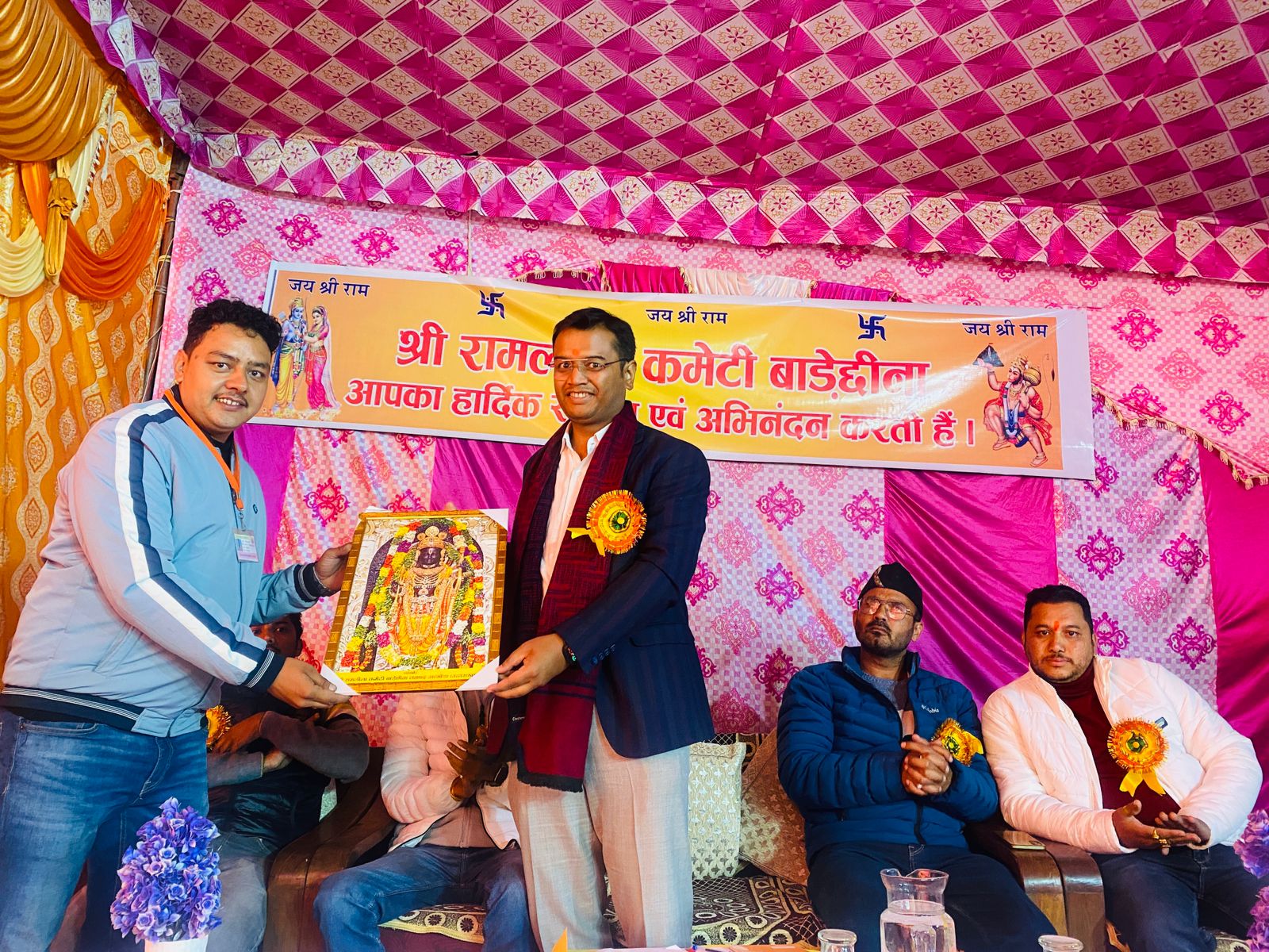 अल्मोड़ा-भारतीय जनता पार्टी के जिला मंत्री एडवोकेट देवाशीष नेगी बाड़ेछीना की रामलीला में मुख्य अतिथि के रूप में उपस्थित रहे।इस अवसर पर अपने संबोधन में देवाशीष नेगी ने कहा कि रामलीला हमारी संस्कृति का मजबूत आधार स्तंभ है। उन्होंने कहा कि रामलीला का उद्देश्य जहां एक और हमारी संस्कृति को संजोकर रखना है तो वहीं दूसरी ओर रामलीला में भगवान श्री राम से हम सबको बहुत कुछ सीखने को मिलता है।उन्होंने सबसे प्रभु श्री राम के दिखाएं आदर्शों पर चलने की अपील भी की।इसके साथ ही श्री नेगी ने कहा कि बाड़ेछीना में कलाकारों के द्वारा दिन-रात मेहनत करके रामलीला का बेहद उत्कृष्ट मंचन किया जाता है जो काफी सराहनीय है।इस अवसर पर उनके साथ चेतन प्रताप सिंह पूर्व क्षेत्र पंचायत सदस्य,विक्रम सिंह बिष्ट, कमल बिष्ट भी उपस्थित रहे।श्री नेगी ने उत्कृष्ट रामलीला के लिए श्री रामलीला कमेटी बाड़ेछीना सहित कमेटी के अध्यक्ष बसंत तिलारा,उपाध्यक्ष गोविंद बिष्ट,उमेश गैड़ा,गोविंद जोशी,सचिव खिलानन्द भट्ट, उपसचिव बलदेव,कोषाध्यक्ष दीपक बिष्ट,हरीश बिष्ट एवं भानु तिलारा की सराहना करते हुए धन्यवाद प्रेषित किया।