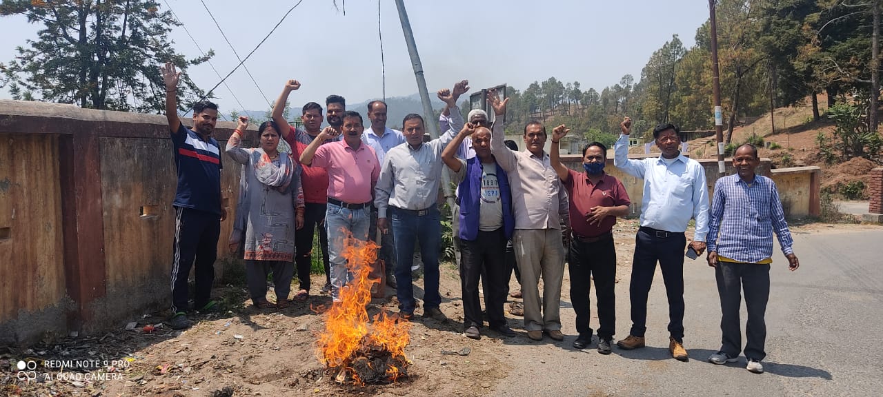 अल्मोड़ा-प्रदेश में हो रही लगातार बिजली कटौती के खिलाफ ब्लाक कांंग्रेस कमेटी भैसियाछाना के कांंग्रेसजनों ने आज ब्लाक कांंग्रेस अध्यक्ष पूरन सिंह सुप्याल के नेतृत्व में प्रदेश की भाजपा सरकार का पुतला दहन किया।इस अवसर पर कांंग्रेस कार्यकर्ताओं ने प्रदेश सरकार के खिलाफ जमकर नारेबाजी की।ब्लाक अध्यक्ष पूरन सुप्याल ने कहा कि भाजपा की डबल इंजन सरकार के द्वारा पूरे प्रदेश में गर्मी के इस मौसम में लगातार विद्युत कटौती की जा रही है।जिससे किसानों,लघु उद्योगों के साथ ही आम जनता को भी भारी दिक्कतों का सामना करना पड़ रहा है तथा पेयजल वितरण भी प्रभावित हो रहा है।उन्होंने कहा कि भाजपा सरकार की कथनी और करनी में बहुत अन्तर है।आज भाजपा की डबल इंजन सरकार राज्य के लोगों को सुचारू रूप से बिजली उपलब्ध कराने में भी असफल सिद्ध रही है जो सिद्व करता है कि भाजपा की डबल इंजन सरकार का इंजन किसी काम का नहीं रह गया है।पुतला दहन कार्यक्रम में भैसियाछाना ब्लाक कांंग्रेस अध्यक्ष पूरन सिंह सुप्याल,ब्लाक उपाध्यक्ष दीपक भट्ट, देवराम आर्य,न्याय पंचायत अध्यक्ष नरेश बाराकोटी,भगवती मटेला,जिला पंचायत सदस्य दीपक सनवाल,राजेन्द्र सिंह बिष्ट,नीरज पाण्डे,गोपाल सिंह मेहरा,विजय भट्ट,हरीश बिष्ट,प्रकाश भट्ट, दीवान नैनवाल,प्रदीप कुमार,प्रताप राम,भगवती प्रसाद आर्या,महेश राम,अर्जुन सिंह,शिवराम,नन्दन राम,चन्दन राम सहित अनेकों कांंग्रेसजन उपस्थित रहे।