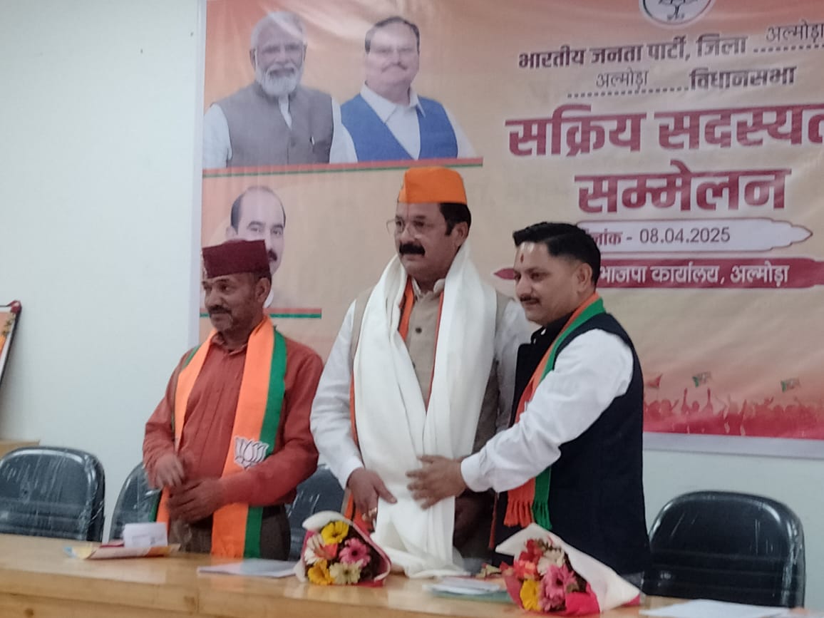 अल्मोड़ा-आज भारतीय जनता पार्टी कार्यालय पाताल देवी में सक्रिय सदस्यता सम्मेलन आयोजित किया गया।जिलाध्यक्ष महेश नयाल की अध्यक्षता में गोष्ठी का आयोजन किया गया।आज के कार्यक्रम के मुख्य अतिथि पूर्व विधायक कैलाश शर्मा,पूर्व विधायक रघुनाथ सिंह चौहान,अल्मोड़ा महापौर अजय वर्माआज के कार्यक्रम के मुख्य वक्ता प्रदेश कार्यकारिणी सदस्य पूर्व राज्य मंत्री गोविंद पिल्खवाल,दुग्ध संघ अध्यक्ष गिरीश खोलिया उपस्थित रहे। मुख्य अतिथि व मुख्य वक्ता ने दीप प्रज्ज्वलित कर कार्यक्रम का शुभारंभ किया।जिलाध्यक्ष ने पुष्प गुच्छ व शाल ओढ़ाकर मुख्य अतिथि का स्वागत अभिनन्दन किया।कार्यक्रम का संचालन धर्मेन्द्र बिष्ट ने किया। कार्यक्रम को जिलाध्यक्ष महेश नयाल ने संबोधित करते हुए भारतीय जनता पार्टी के इतिहास की जानकारी साझा की।कैसे भारतीय जनता पार्टी ने अपनी पार्टी की स्थापना की।भाजपा दो सीटों से तीन सौ से ज्यादा सीटें जीतकर आगे बढ़ रही हैं।उन्होंने कहा कि आज प्रधानमंत्री नरेन्द्र मोदी के नेतृत्व में तीसरी बार केन्द्र में सरकार बनी है और भारत विश्व गुरु बनने जा रहे है। भारतीय जनता पार्टी के सभी कार्यकर्ताओं की मेहनत है जो पार्टी आज शिखर पर पहुंच गई है।उन्होंने सभी सक्रिय सदस्यो को बधाई दी ओर सभी को शुभकामनाएं दी।कार्यक्रम को संबोधित करते हुए आज के मुख्य वक्ता गोविंद पिल्खवाल ने भी सभी पदाधिकारियों,सक्रिय सदस्यो को बताया कि भारतीय जनता पार्टी विश्व की सबसे बड़ी पार्टी है आप उस पार्टी के सदस्य हैं।हमें गौरव है कि हम ऐसी पार्टी से जुड़े है।भारतीय जनता पार्टी ही ऐसी पार्टी है जो इस देश को शिखर तक ले जा रही है।हमारी पार्टी में जितने भी सक्रिय सदस्य बने हैं सभी का पार्टी में योगदान है।हमारे कार्यकर्ता दिलों जान से पार्टी का काम करते हैं।हम सभी एक परिवार के साथ काम करते हैं।हम सभी को साथ लेकर चलते हैं।हमारी पार्टी में परिवार वाद नहीं चलता है अन्य पार्टी में परिवार वाद चलता है।भारतीय जनता पार्टी के सभी कार्यकर्ता देशभक्त व राष्ट्र वादी होते हैं। हमारे अन्दर राष्ट्र वाद कूट कूट कर भरा हुआ है। कहा कि हमारे प्रधानमंत्री नरेन्द्र मोदी ने पूरे विश्व में भारत का डंका बजाया है। आज के कार्यक्रम के मुख्य अतिथि पूर्व विधायक कैलाश शर्मा ने भी सभी पदाधिकारियों को शुभकामनाएं दी।कार्यक्रम को संबोधित करते हुए उन्होंने संगठन पर्व के चल रहे आज के सक्रिय सदस्यता सम्मेलन में उपस्थित पदाधिकारियों को भारतीय जनता पार्टी की कार्य शैली की बारिकियों को समझाया।कहा कि कैसे हमें पार्टी के कार्यों को जनता तक पहुंचाना है, पार्टी ने जो भी योजनाएं बनाई हैं उनका लाभ जनता को मिलना चाहिए इसकी भी सभी को जिम्मे