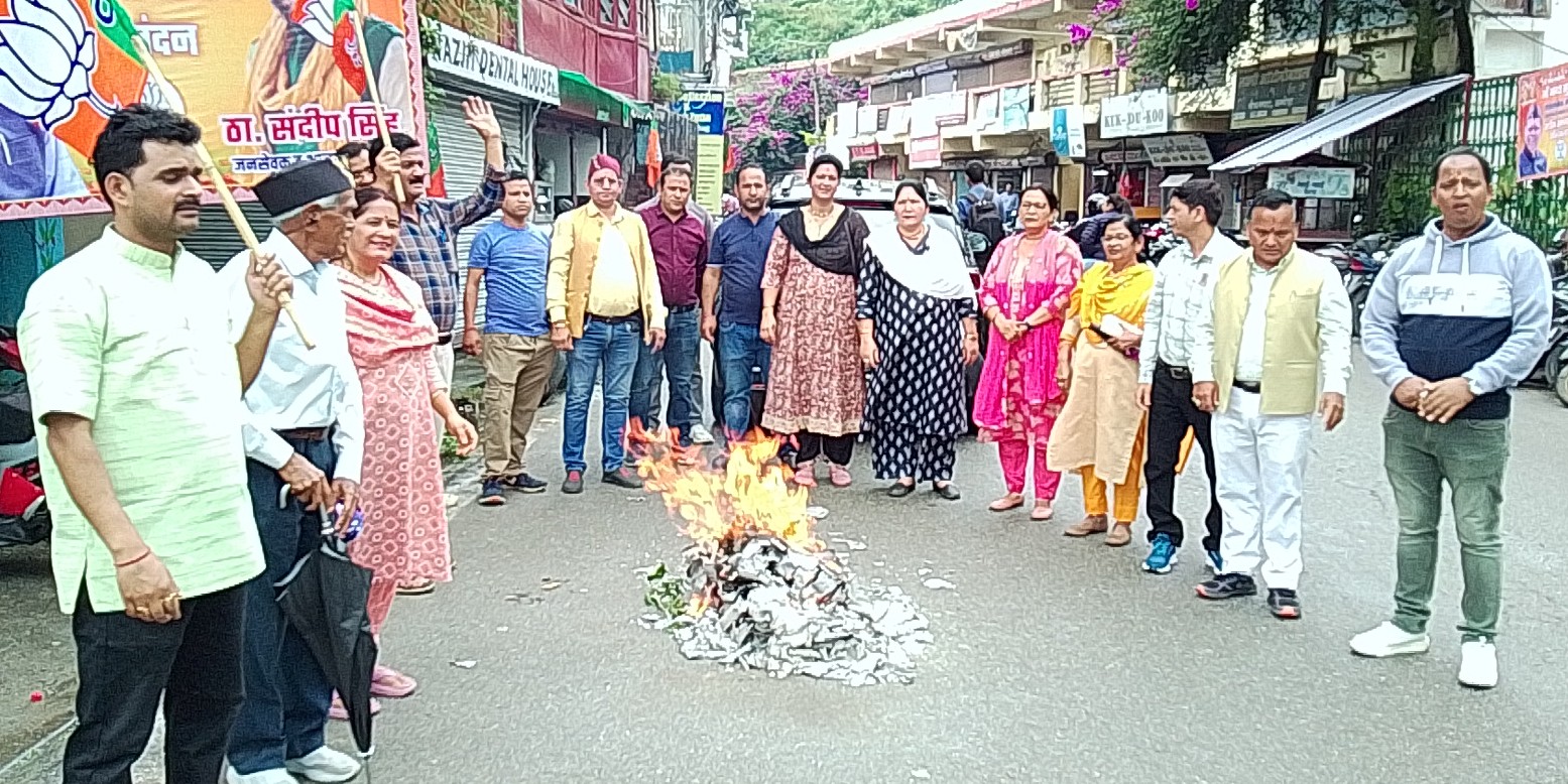 अल्मोड़ा-प्रधानमंत्री नरेंद्र मोदी की मां के लिए अभद्र टिप्पणी करने का आरोप कांग्रेस पार्टी पर लगाते हुए भाजपा महिला मोर्चा के द्वारा कांग्रेस का पुतला दहन किया गया।इस दौरान महिला मोर्चा की जिलाध्यक्ष लीला बोरा ने बिहार में राहुल गांधी की रैली के दौरान प्रधानमंत्री मोदी और उनकी दिवंगत मां को गाली देने की कड़ी निंदा की।उन्होंने कहा कि यह अपमान न केवल मोदी जी की मां का है बल्कि पूरे माताओं और महिलाओं का अपमान है।लीला बोरा ने राहुल गांधी को भी अश्लील भाषा इस्तेमाल करने पर आड़े हाथ लिया और कहा कि ऐसी भाषा बोलने वाले चुनाव में खाली हाथ वापस जाते हैं।उन्होंने यह भी कहा कि नारी को भारत में देवी माना जाता है इसलिए मृत महिला का अपमान अशोभनीय है।नगर अध्यक्ष विनीत बिष्ट ने भी बिहार के दरभंगा में राहुल गांधी के मंच से प्रधानमंत्री मोदी की मां को गाली देने की कड़ी निंदा की।उन्होंने कहा यह नकारात्मक, घृणित राजनीति है जो कांग्रेस को गर्त में ले जाएगी।विनीत बिष्ट ने कहा जितनी गाली कांग्रेस देगी,उतना कमल खिलेगा और राहुल गांधी को पीएम मोदी और उनकी मां से माफी मांगनी चाहिए। उन्होंने कहा कि यह अत्यंत अशोभनीय है और वे इसकी निंदा करते हैं।कार्यक्रम मे महिला मोर्चा जिलाध्यक्ष लीला बोरा,प्रदेश सह मीडिया प्रभारी पूनम पालीवाल, जिला उपाध्यक्ष तारा जीना,नगर उपाध्यक्ष दीपा अधिकारी,भाजपा