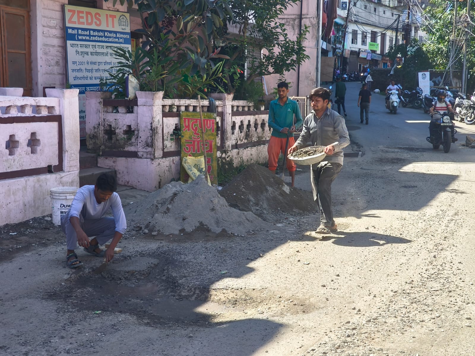 अल्मोड़ा-विगत बुधवार को भारतीय जनता पार्टी के नगर अध्यक्ष अमित शाह मोनू भाजपा कार्यकर्ताओं के साथ लोक निर्माण विभाग के कार्यालय में पहुंचे थे और जाखन देवी सड़क में बने गढ्ढों पर गहरा रोष व्यक्त किया था एवं अविलम्ब गढ्ढे भरने की मांग की थी।उसके बाद अधिशासी अभियंता के द्वारा उन्हें आश्वासन दिया गया था कि अविलंब सड़क के गढ्ढो को भर दिया जाएगा और 21 तारीख से पेच वर्क के टेंडर निकाल दिए जाएंगे।आज 20 तारीख शुक्रवार को प्रातः से ही जल निगम विभाग के कर्मचारी जाखनदेवी रोड में पहुंच गए एवं सड़क के गड्ढे भरने का कार्य प्रारंभ कर दिया गया है। इस सड़क में डामरीकरण का कार्य पूर्व में जल निगम विभाग द्वारा किया गया था।हांलांकि अभी पूरी सड़क के गढ्ढे नहीं भरे गये हैं। लेकिन जल निगम विभाग ने अरोमा ऑटोमोबाइल के सामने कुछ बड़े गढ्ढों को भर दिया है।जिससे जनता को कुछ तो राहत मिलेगी।