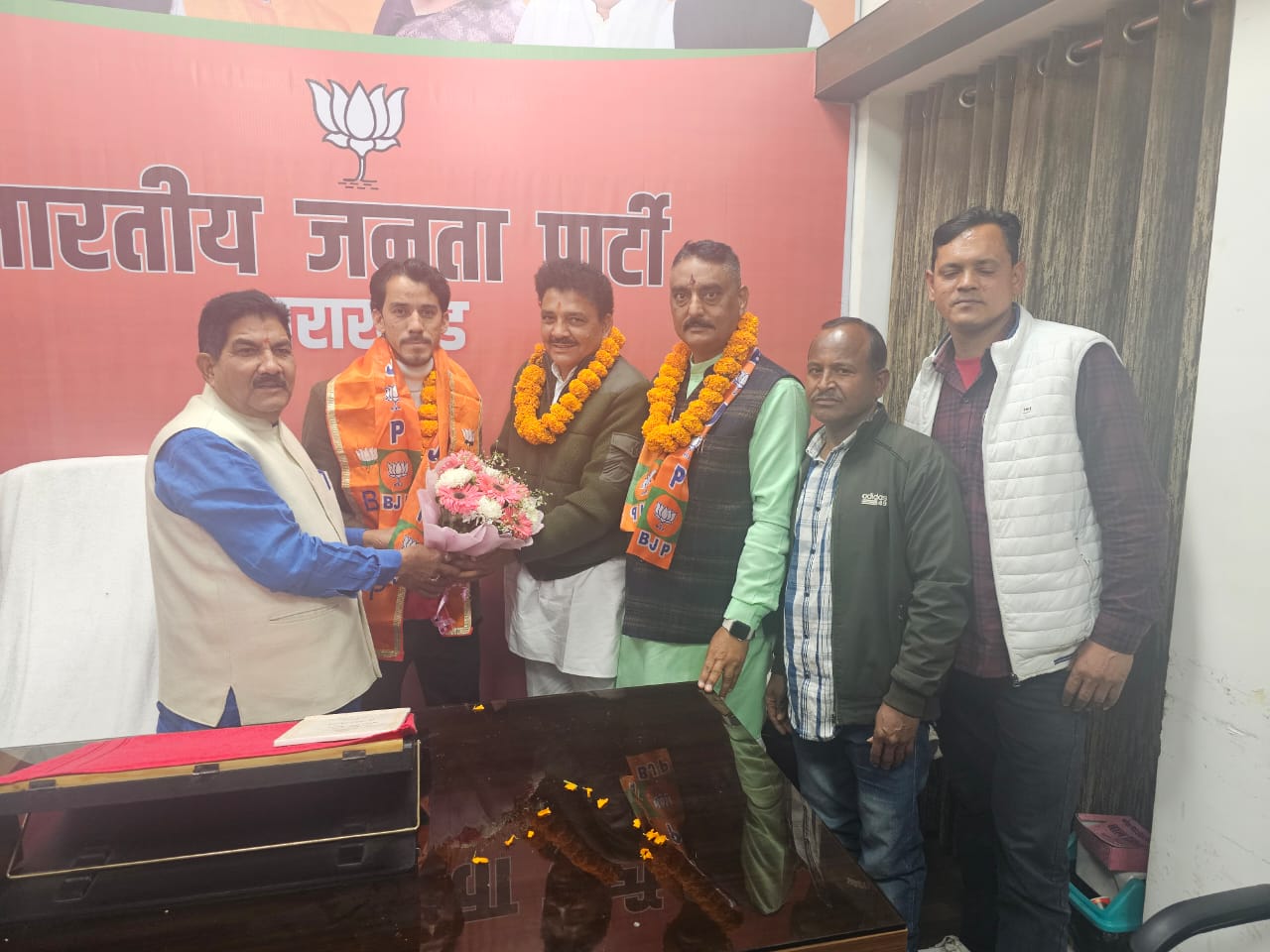 देहरादून-आज देहरादून में भारतीय जनता पार्टी कार्यालय में भाजपा के वरिष्ठ नेताओं ने भिकियासैंण के कांग्रेस ब्लॉक अध्यक्ष नंदन सिंह रावत को भाजपा की सदस्यता दिलाई। राजेंद्र सिंह बिष्ट महामंत्री भारतीय जनता पार्टी एवं अजय कुमार संगठन महामंत्री ने उन्हें सदस्यता दिलाई।इस अवसर पर भाजपा नेता बिट्टू कर्नाटक ने बताया कि रानीखेत विधानसभा में विधायक प्रमोद नैनवाल के विकास कार्यों एवं आमजन के प्रति व्यवहार से प्रभावित होकर भिकियासैंण के कांग्रेस ब्लॉक अध्यक्ष नंदन सिंह रावत ने विधायक प्रमोद नैनवाल पर आस्था व्यक्त करते हुए भारतीय जनता पार्टी की सदस्यता ली है।उन्होंने आगे कहा कि आने वाले दिनों में रानीखेत विधानसभा में विधायक प्रमोद नैनवाल के नेतृत्व में कई अन्य लोग भी भारतीय जनता पार्टी की सदस्यता ग्रहण करेंगे।विदित हो कि नगर निगम चुनाव से पहले पूर्व दर्जा मंत्री बिट्टू कर्नाटक ने कांग्रेस छोड़ भाजपा की सदस्यता ली थी,इसके साथ ही उनके द्वारा यह बात भी कही गयी थी कि उनके द्वारा अल्मोड़ा सहित अन्य जिलों में यथासंभव अधिक से अधिक लोगों को भारतीय जनता पार्टी से जोड़ा जाएगा, उनके द्वारा यह भी कहा गया था की आने वाले दिनों में स्थिति यह होगी कि अल्मोड़ा विधानसभा सहित पूरे जिले में कांग्रेस को बस्ता उठाने तक के लिए कार्यकर्ता नहीं मिलेंगे। इसी क्रम में उनके द्वारा भिकियासैंण के कांग्रेस ब्लॉक अध्यक्ष नंदन सिंह रावत से बात की गई तथा आज देहरादून में वरिष्ठ भाजपा नेताओं के समक्ष नंदन सिंह रावत को भारतीय जनता पार्टी की सदस्यता दिलवाई। आज इस कार्यक्रम में राजेंद्र सिंह बिष्ट महामंत्री भारतीय जनता पार्टी,अजय कुमार संगठन महामंत्री भारतीय जनता पार्टी, रानीखेत विधायक प्रमोद नैनवाल,भाजपा नेता बिट्टू कर्नाटक, मनजीत भगत मंडल महामंत्री,शिवेंद्र जीना सभासद,सुरेंद्र बिष्ट उपाध्यक्ष भारतीय युवा मोर्चा,आनंद सिंह बिष्ट सहित भारतीय जनता पार्टी के अनेक वरिष्ठ नेता उपस्थित रहे।