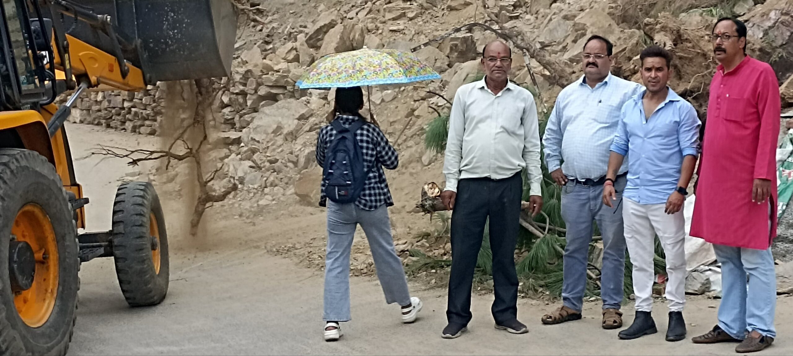 अल्मोड़ा-लक्ष्मेश्वर बाईपास के पास आज दोपहर पहाड़ी का एक हिस्सा भरभराकर सड़क पर आ गया।इसमें जान-माल की तो कोई क्षति नहीं हुई लेकिन अचानक गिर मलवे से लोगों में भय का माहौल उत्पन्न हो गया। मौके पर पहुंचे पार्षद अमित साह मोनू ने तुरन्त आपदा प्रबंधन से वार्ता की तथा मौके पर जेसीबी बुलवाकर तत्काल सड़क से मलवा हटाया। उन्होंने प्रशासन से मांग भी की है कि मानसून के इस मौसम में एक जेसीबी नगर क्षेत्र के लिए रिजर्व रखी जाए ताकि इस तरह की घटना होने पर तुरंत जेसीबी मौके पर पहुंच सके।इस अवसर पर पार्षद अमित साह मोनू के साथ पार्षद अर्जुन बिष्ट चीमा, अभिजीत तिवारी,हेम चंद्र जोशी, दिनेश दानी,अतुल पांडे आदि लोग उपस्थित रहे।