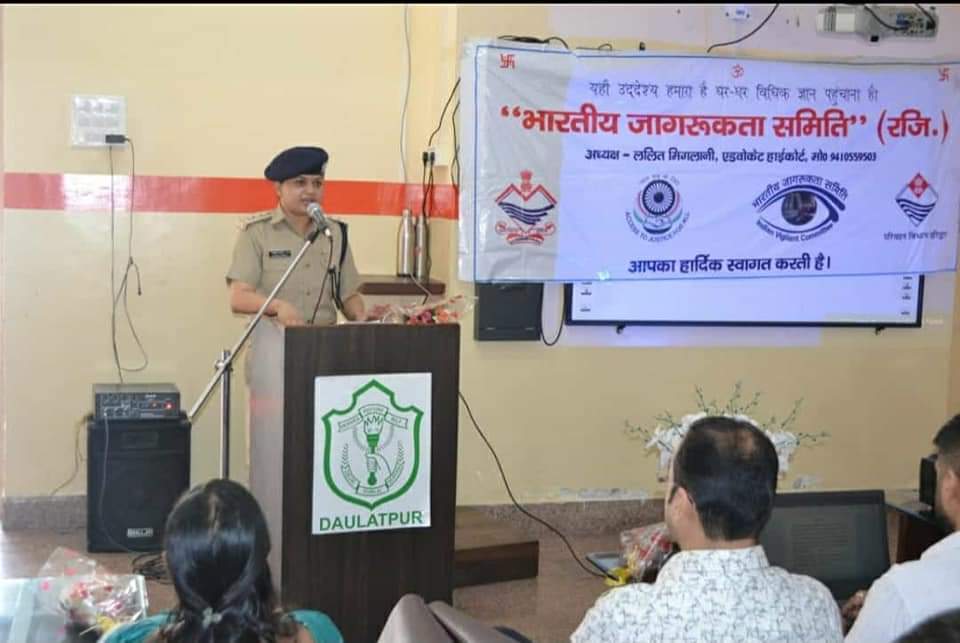 हरिद्वार-दिनांक 30 अप्रैल को भारतीय जागरूकता समिति द्वारा डीपीएस दौलतपुर में एक कार्यशाला का आयोजन कर छात्रों को कानून संबंधी जानकारी दी गयी।कार्यशाला में एआरटीओ हरिद्वार रत्नाकर सिंह, सीओ ऑप्स व साइबर,हरिद्वार पुलिस निहारिका सेमवाल मुख्य अतिथि रहे।एआरटीओ रत्नाकर सिंह द्वारा स्कूल के बच्चों को ट्रैफिक नियमों की जानकारी देते हुए वाहन चलाने के लिए निर्धारित आयु सीमा आदि के विषय में विस्तार से जानकारी दी गई। जबकि सीओ साइबर निहारिका सेमवाल द्वारा नशे के दुष्प्रभाव के बारे में चर्चा करते हुए बच्चों को नशे से दूर रहने के लिए बताया गया साथ ही साइबर क्राइम के प्रति भी जागरूक किया गया।समस्त स्कूल स्टाफ द्वारा अतिथियों का स्वागत करते हुए कार्यशाला के आयोजन के लिए समिति की सराहना की गई साथ ही छात्र छात्राओं द्वारा आश्वासन दिया गया कि कार्यशाला में दी गई जानकारियों का भविष्य में पालन करेंगे।उक्त अवसर पर भारतीय जागरूकता समिति के अध्यक्ष ललित मिगलानी,प्रिंसिपल डीपीएस पूनम श्रीवास्तव,एस ओ बहादराबाद नितेश शर्मा व समस्त स्कूल स्टाफ मौजूद रहा।