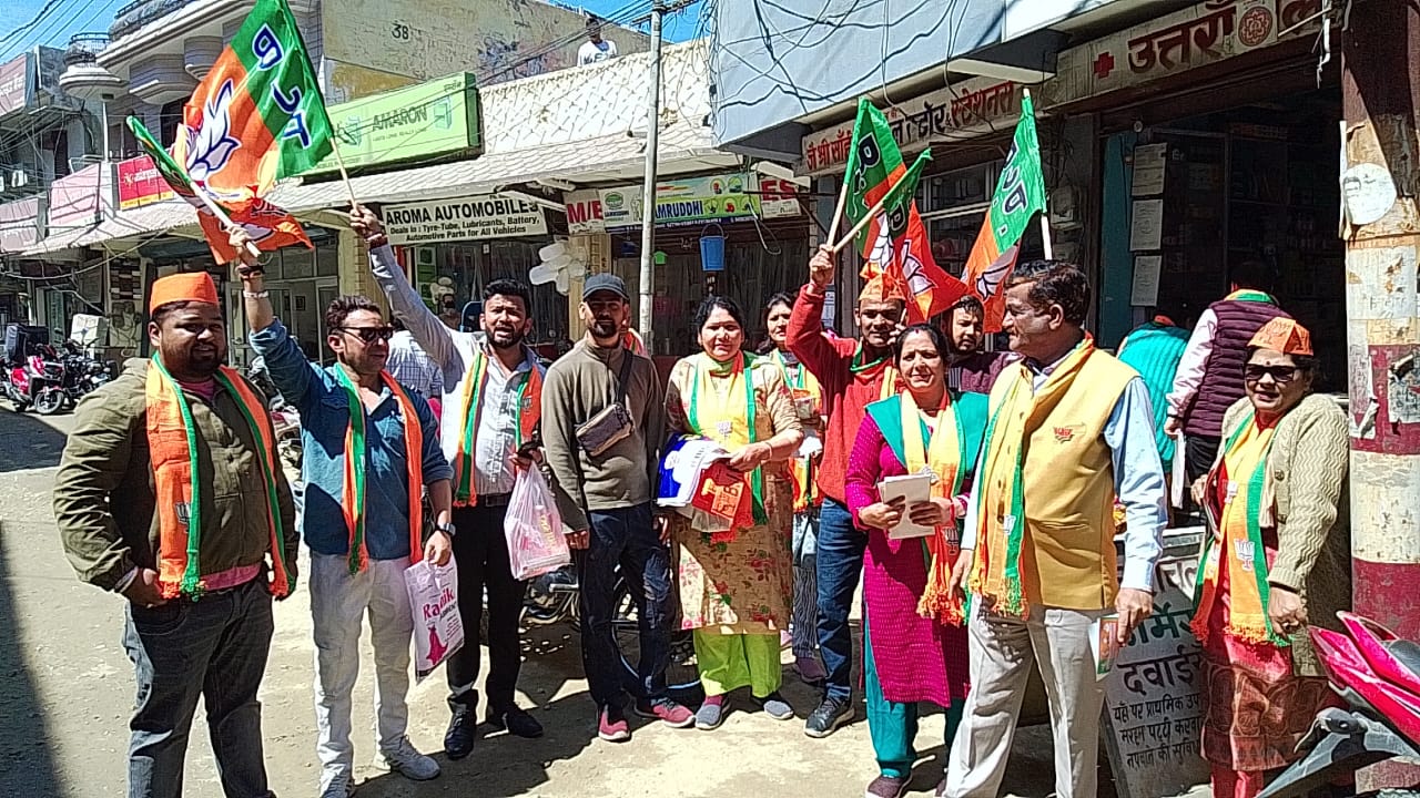अल्मोड़ा-लोकसभा चुनाव को लेकर आज भारतीय जनता पार्टी के कार्यकर्ताओं ने अल्मोड़ा विधानसभा के नगर पालिका क्षेत्र में घर घर जाकर प्रचार कार्य किया।भारतीय जनता पार्टी के पदाधिकारियों ने नगर के अलग अलग क्षेत्रों में टोलियां बनाकर घर घर जाकर प्रचार प्रसार किया।आज एक टोली जिला उपाध्यक्ष मीना भैसोड़ा के नेतृत्व में गंगा पांडे,चन्द्रा जोशी,प्रेमा मेर,माया जोशी सुसमा टम्टा,नंदिता,शान्ति,प्रेमा,जानकी,कोमल महिला पदाधिकारियों ने कुवाडखोला,टम्टा मोहल्ला होते हुए नरसिंह बाड़ी तक,दूसरी टीम मे अमित शाह मोनू नगर अध्यक्ष व महिला मोर्चा जिलाध्यक्ष लीला बोरा के नेतृत्व में कैलाश गुरुरानी जिला उपाध्यक्ष, गोविंद मटेला आईं टी,मनोज जोशी, महामंत्री नगर,लता पांडे जिला कार्यकारिणी सदस्य,महिला मोर्चा महामंत्री रेखा आर्य,नगर अध्यक्ष भावना तिवारी,दीपा बिष्ट,ललिता पंचपाल,नेहा उप्रेती,तारा जीना,प्रभा बोरा,पीयूष पांडे,रवि कुमार,पीयूष कुमार,राहुल टम्टा,गीता जोशी,दिशांत पवार ने जाखनदेवी से पनिउड़ियार, रानीधारा तक जनसम्पर्क किया।तीसरी टोली ने युवा मोर्चा जिलाध्यक्ष चन्दन बहुगुणा,पारस नेगी महामंत्री,नमन गुरुरानी उपाध्यक्ष के नेतृत्व में मोहित बिष्ट,आदित्य राणा, मोहित कोरंगा,प्रकाश बिष्ट,खजान पांडे,राहुल बिष्ट,प्रेम डालाकोटी ने मिलन चौक,चर्च एडम्स,जेल रोड होते मुहल्ला ढुंगाधारा तक घर घर जाकर केन्द्र सरकार कि नीतियों को जन-जन तक पहुंचाया। कार्यकर्ताओं ने अबकी बार 400 पार का नारा दिया।शत प्रतिशत वोट डालने के लिए भी युवा,नये वोटर,एवं बुजुर्ग सीनियर सिटीजन को शपथ दिलाई गई।