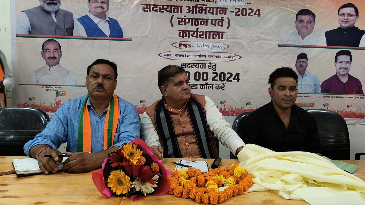 आज प्रातः भाजपा प्रदेश अध्यक्ष जागेश्वर गये एवं वहां भाजपा कार्यकर्ताओं के साथ बैठक की। दोपहर एक बजे से भाजपा प्रदेश अध्यक्ष महेन्द्र भट्ट ने पाताल देवी स्थित पार्टी कार्यालय में कार्यकर्ताओं के साथ बैठक कर उनमें एक नयी ऊर्जा का संचार करने का कार्य किया। उन्होंने कहा कि भारतीय जनता पार्टी के सदस्यता अभियान में लोग बढ़-चढ़ कर जुड़ रहे हैं तथा सदस्यता अभियान ऐतिहासिकता की ओर जा रहा है।इसके बाद कार्यकर्ताओं के साथ उन्होंने अनेक मुद्दों पर चर्चा भी की।इस अवसर पर भाजपा जिलाध्यक्ष रमेश बहुगुणा,नगर अध्यक्ष अमित साह, पूर्व जिलाध्यक्ष रवि रौतेला,जिला महामंत्री धर्मेन्द्र बिष्ट,पूर्व जिलाध्यक्ष ललित लटवाल,जिला मंत्री विनीत बिष्ट, दुग्ध संघ अध्यक्ष गिरीश खोलिया,महिला मोर्चा प्रदेश उपाध्यक्ष किरन पंत, देवाशीष नेगी,ए कै सिकन्दर पवार,दर्शन रावत,अर्जुन बिष्ट, पूर्व सभासद श्याम पाण्डे, सलमान अंसारी,निवर्तमान सभासद जगमोहन बिष्ट,जिला उपाध्यक्ष कैलाश गुरुरानी,जगत भट्ट,अजय वर्मा सहित दर्जनों कार्यकर्ता उपस्थित रहे।